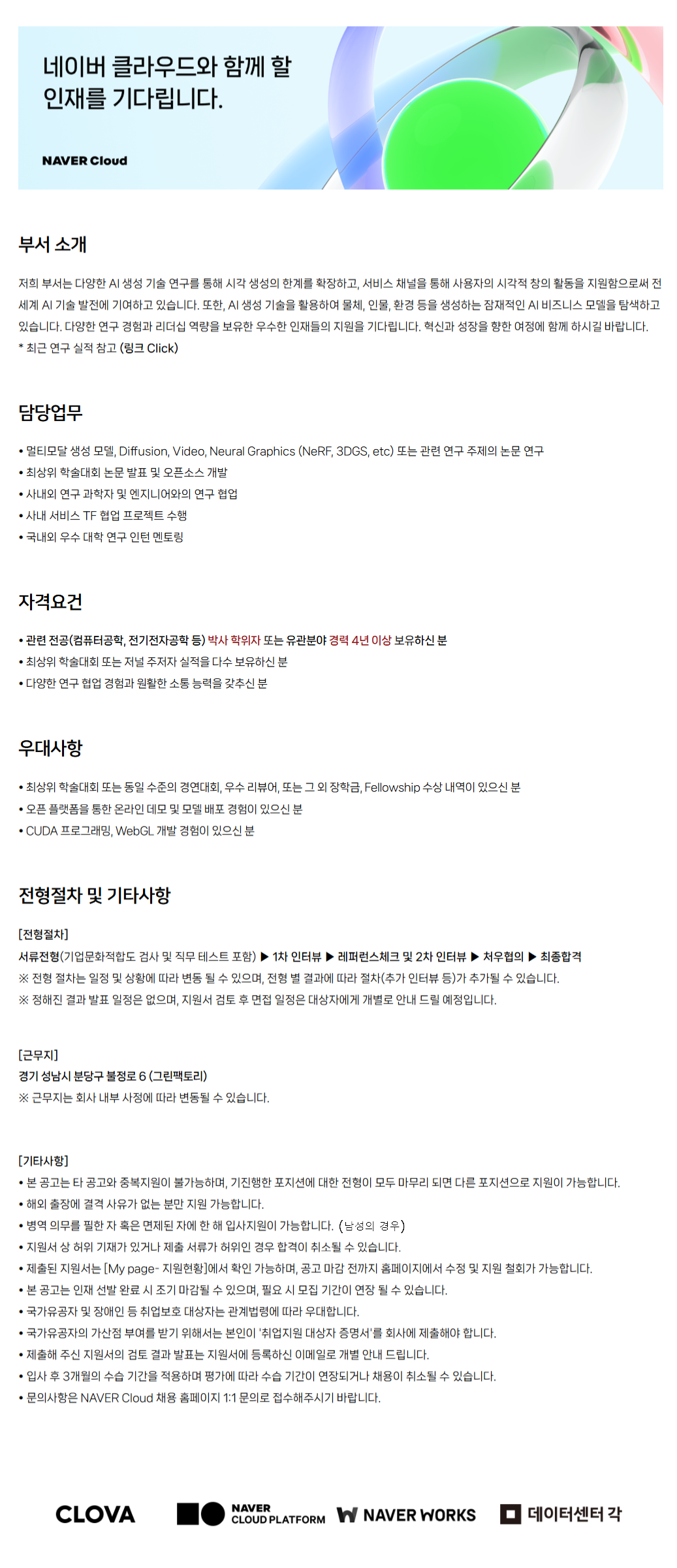 [NAVER Cloud] AI Lab Vision Research Scientist (°æ·Â)