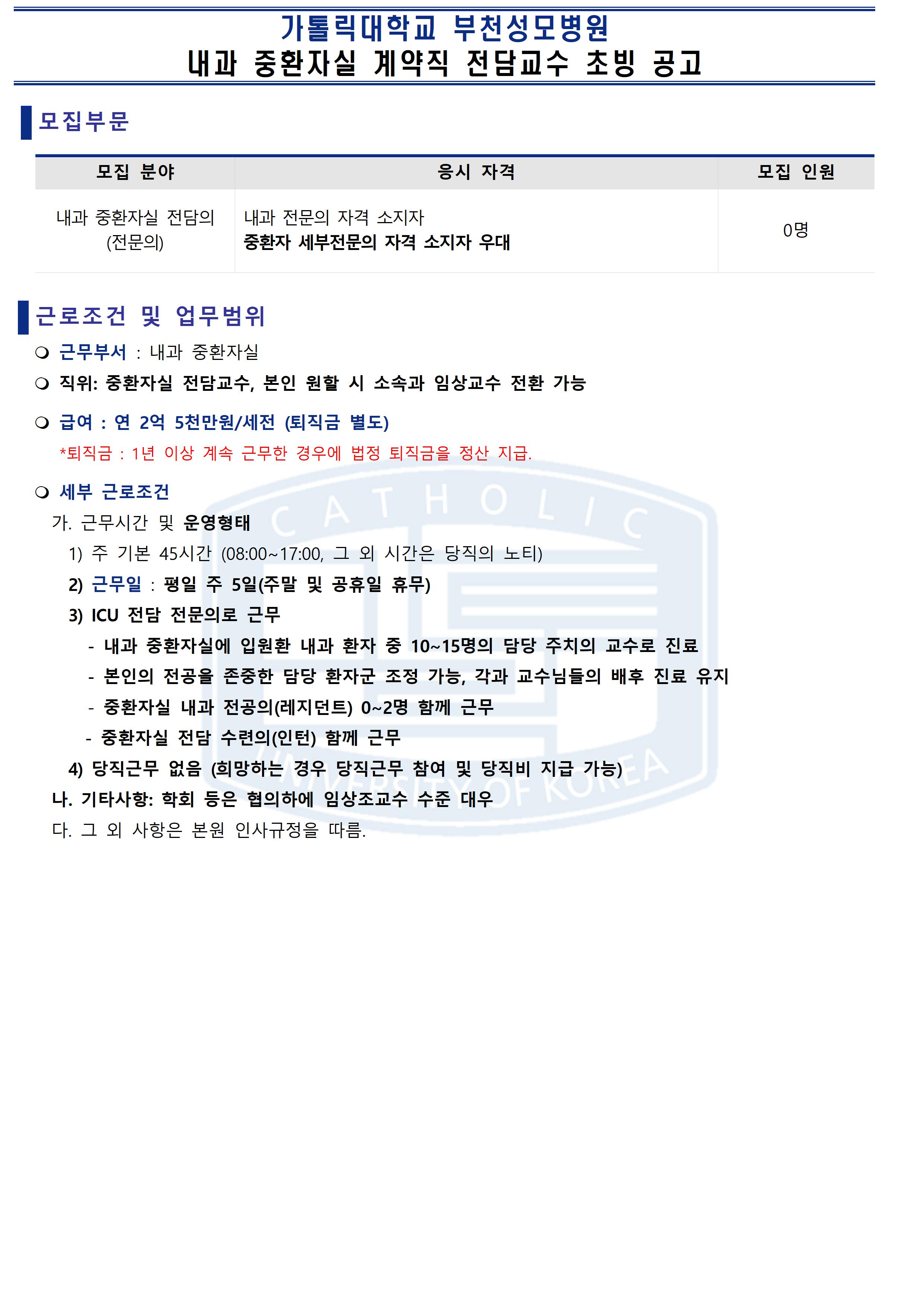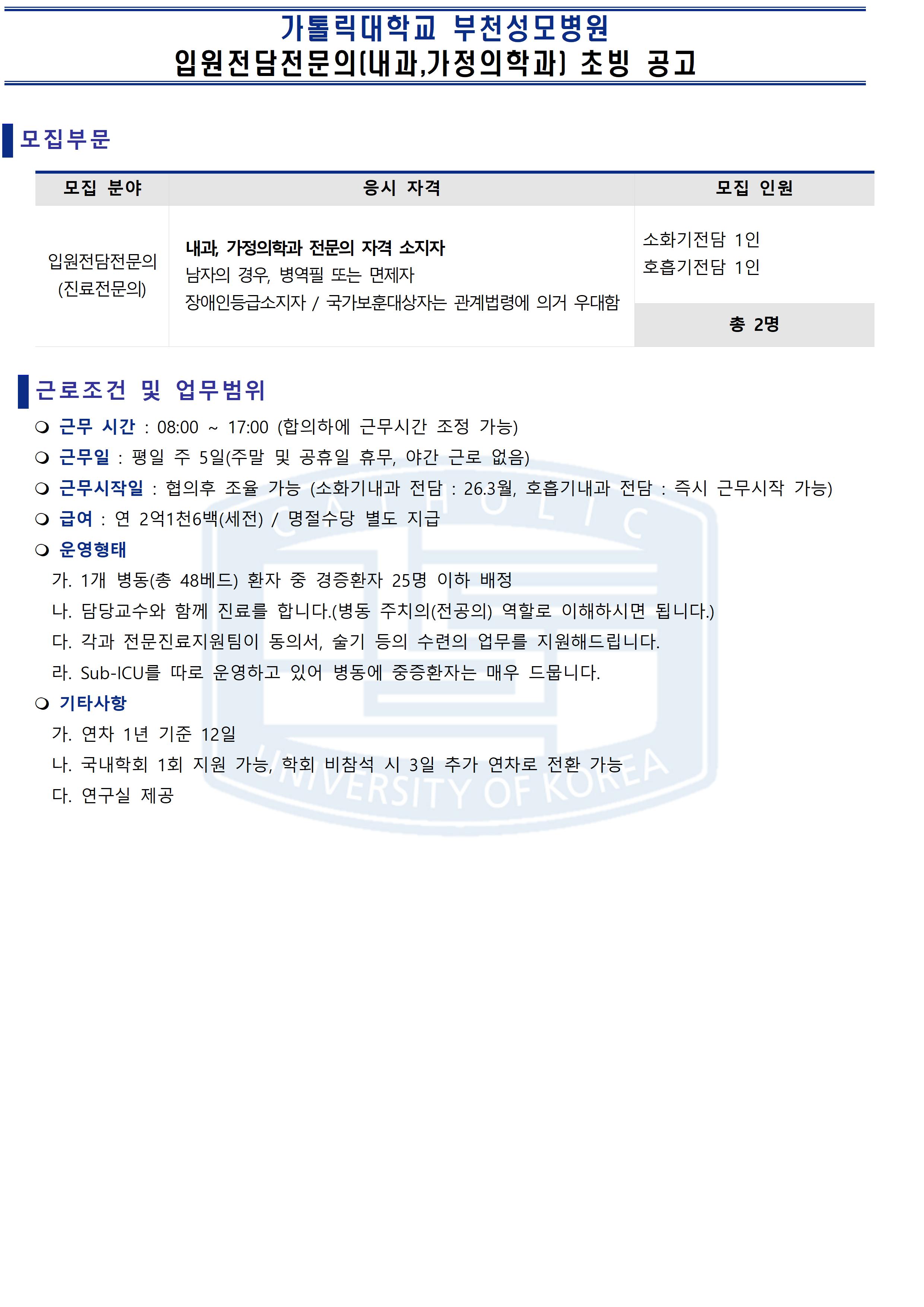[ºÎõ¼º¸ð] ³»°ú ÀÔ¿øÀü´ã ¹× ÁßȯÀÚ½Ç Àü´ã Àü¹®ÀÇ(°è¾àÁ÷) Ãʺù°ø°í