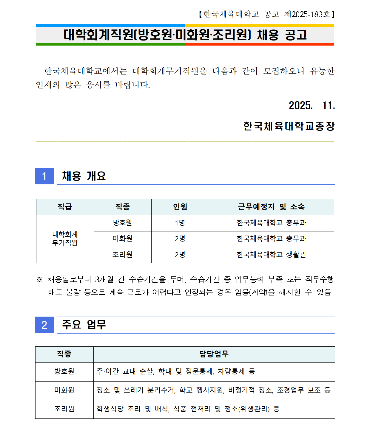 Çѱ¹Ã¼À°´ëÇб³ ´ëÇÐȸ°è¹«±âÁ÷¿ø(¹æÈ£¿ø, ¹ÌÈ¿ø, Á¶¸®¿ø) ä¿ë °ø°í