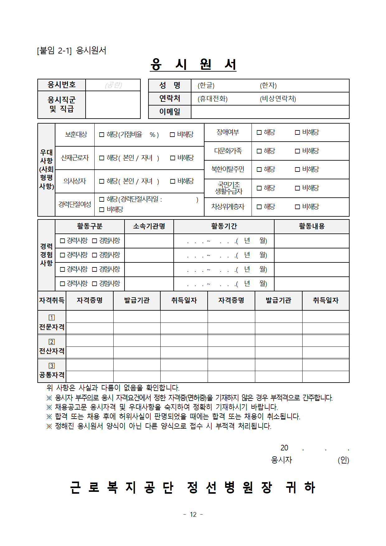 ¡±ÀÏÇÏ´Â »î¿¡ ¾È½É°ú ¾ÈÁ¤À» µå¸®´Â¡± ±Ù·Îº¹Áö°ø´Ü Á¤¼±º´¿ø¿¡¼ ±Ù¹«ÇÒ ¿ª·® ÀÖ´Â Á÷¿øÀ» ¸ðÁýÇÕ´Ï´Ù. 2025³â 12¿ù 1ÀÏ ±Ù·Îº¹Áö°ø´Ü Á¤¼±º´¿øÀå 1. ä¿ëºÐ¾ß ¹× ä¿ëÀοø ▢ ä¿ëºÐ¾ß ¹× Àοø: ÃÑ 6¸í ±Ù¹«±â°ü Á÷±º Á÷·Ä ä¿ëÀοø Á¤¼±º´¿ø °ø¹«Á÷ °£È£Á¶¹«»ç 6¸í ¡Ø ±â°ü¼ÒÀçÁö: °¿øÆ¯º°ÀÚÄ¡µµ Á¤¼±±º Á¤¼±À¾ ºÀ¾ç1±æ 145
