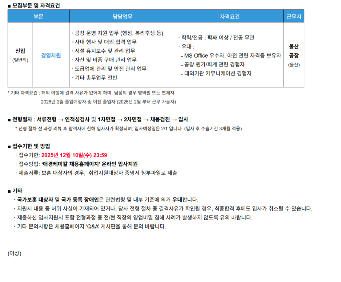 [½ÅÀÔ] ¿ï»ê°øÀå '°æ¿µÁö¿ø' ´ã´ç ¸ðÁý