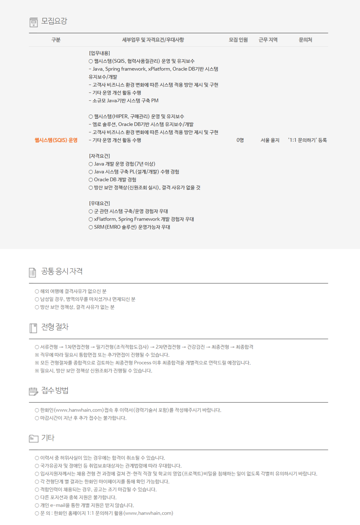 À¥½Ã½ºÅÛ(SQIS,Supplier Quilty Information System, Çù·Â»çǰÁú°ü¸®) ¿î¿µ ¹× À¯Áöº¸¼ö °æ·Â»ç¿ø ä¿ë