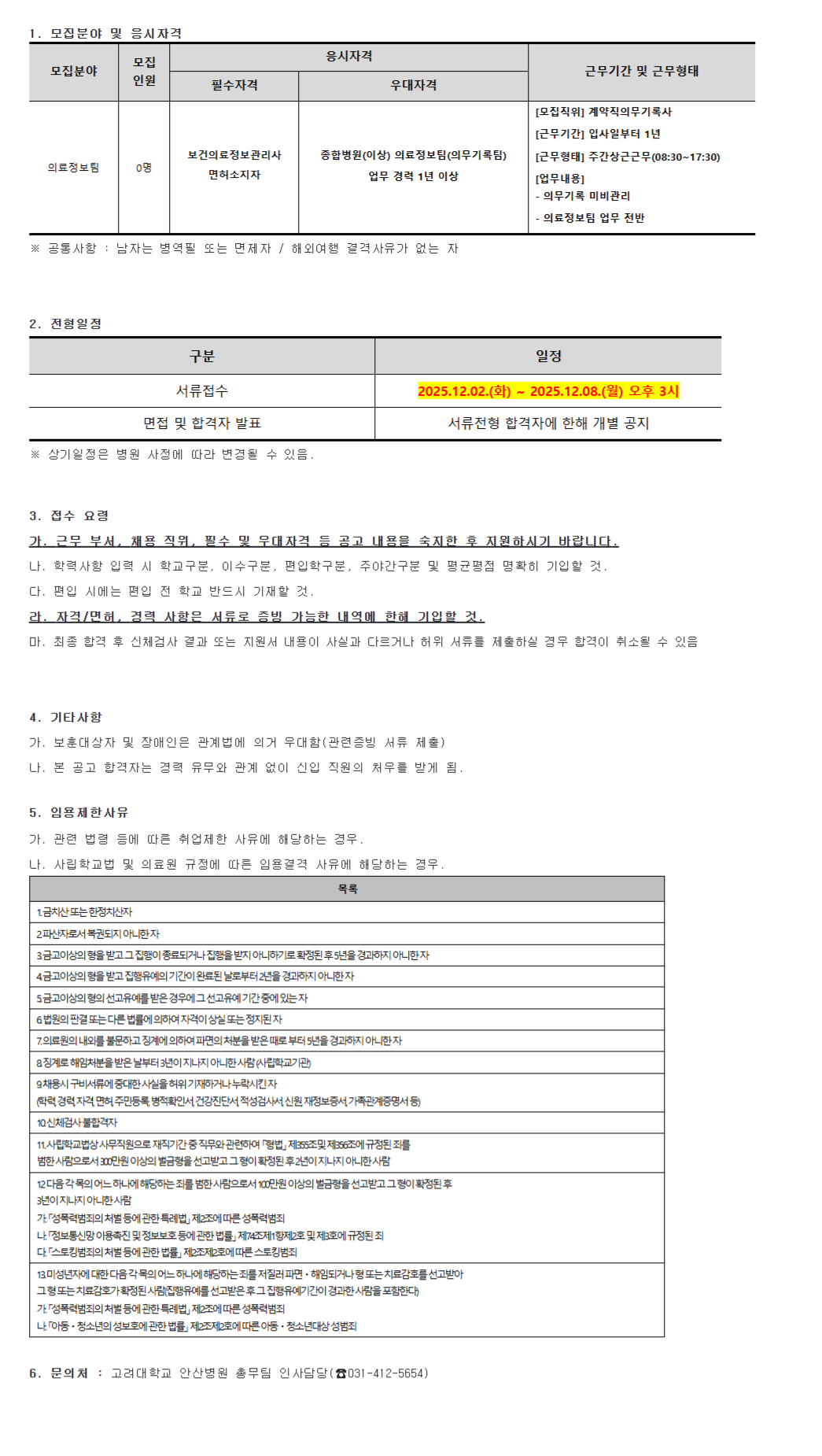 [¾È»êº´¿ø25-180] ÀÇ·áÁ¤º¸ÆÀ °è¾àÁ÷Àǹ«±â·Ï»ç ¸ðÁý