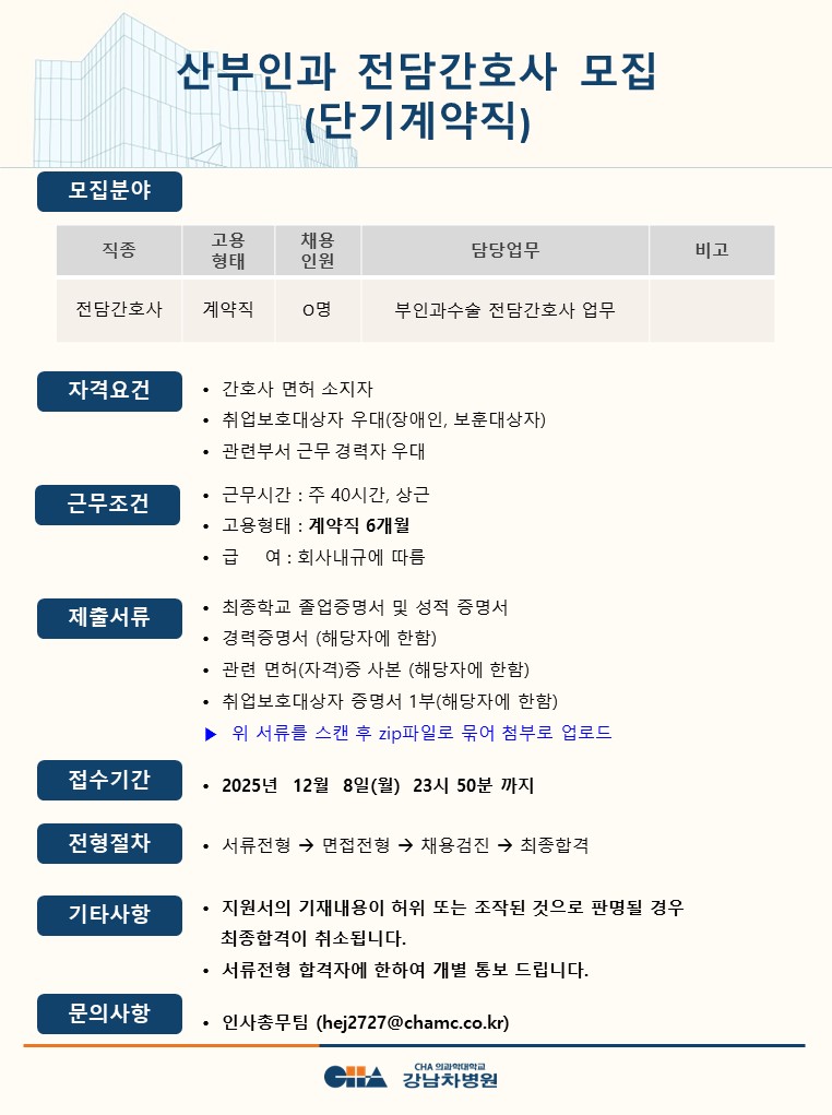 [°­³²Â÷º´¿ø] »êºÎÀΰú Àü´ã°£È£»ç ¸ðÁý(´Ü±â°è¾àÁ÷)