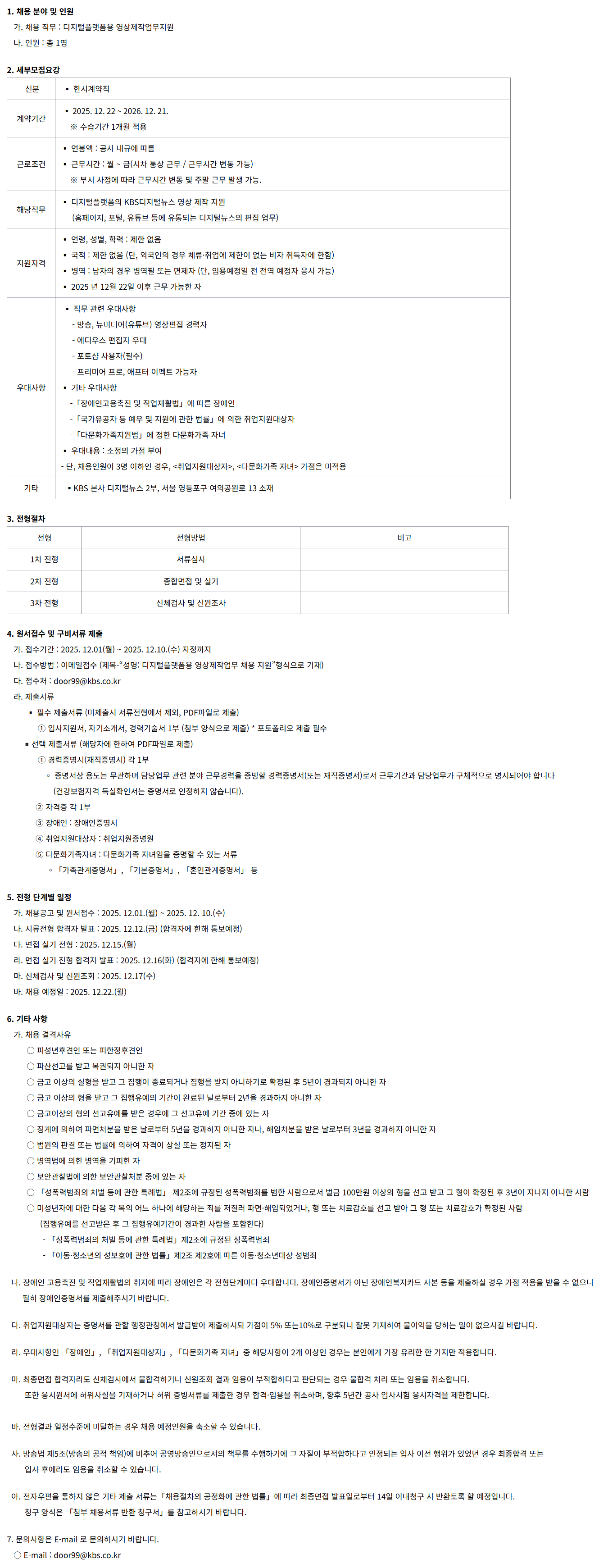 °¡. ä¿ë°ø°í ¹× ¿ø¼Á¢¼ö : 2025. 12.01.(¿ù) ~ 2025. 12. 10.(¼ö)