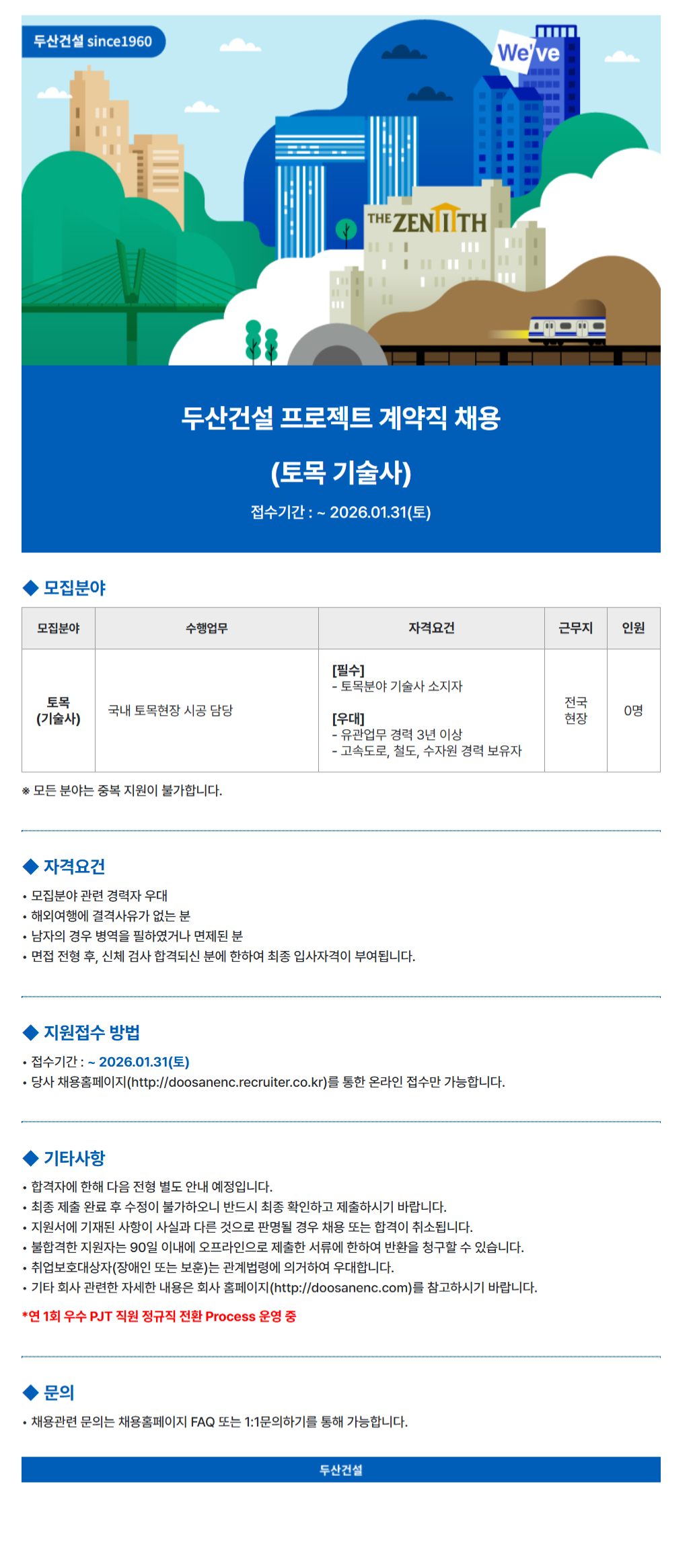 µÎ»ê°Ç¼³ ÇÁ·ÎÁ§Æ® °è¾àÁ÷ ä¿ë(Åä¸ñ ±â¼ú»ç)