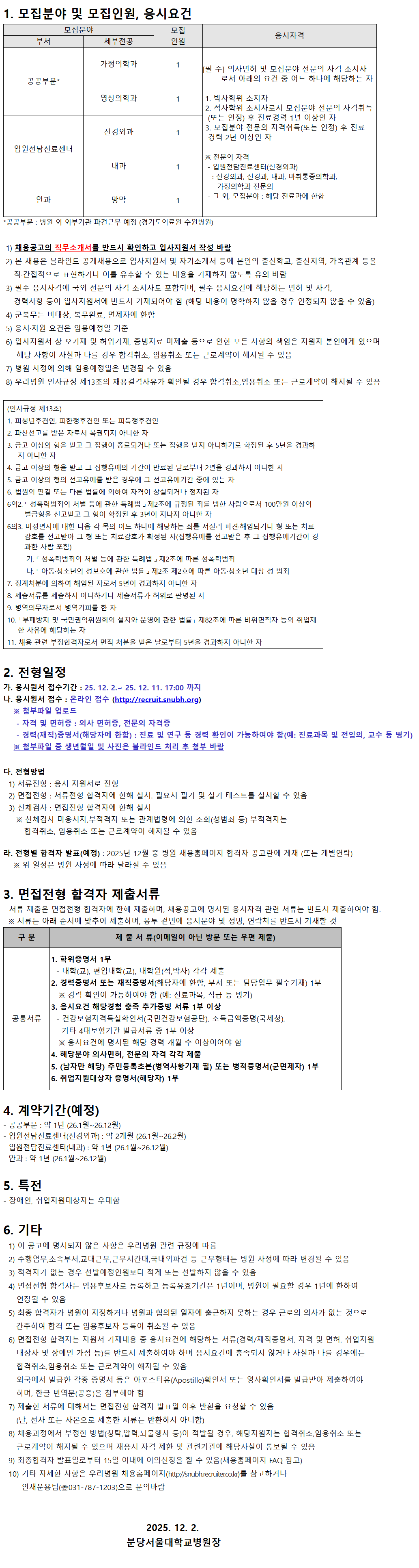 ¶ó. ÀüÇüº° ÇÕ°ÝÀÚ ¹ßÇ¥(¿¹Á¤) : 2025³â 12¿ù Áß º´¿ø ä¿ëȨÆäÀÌÁö ÇÕ°ÝÀÚ °ø°í¶õ¿¡ °ÔÀç (¶Ç´Â °³º°¿¬¶ô)