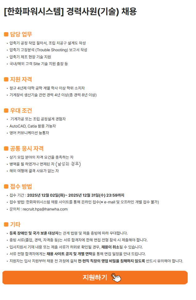 [ÇÑÈÆÄ¿ö½Ã½ºÅÛ] °æ·Â»ç¿ø(±â¼ú) ä¿ë