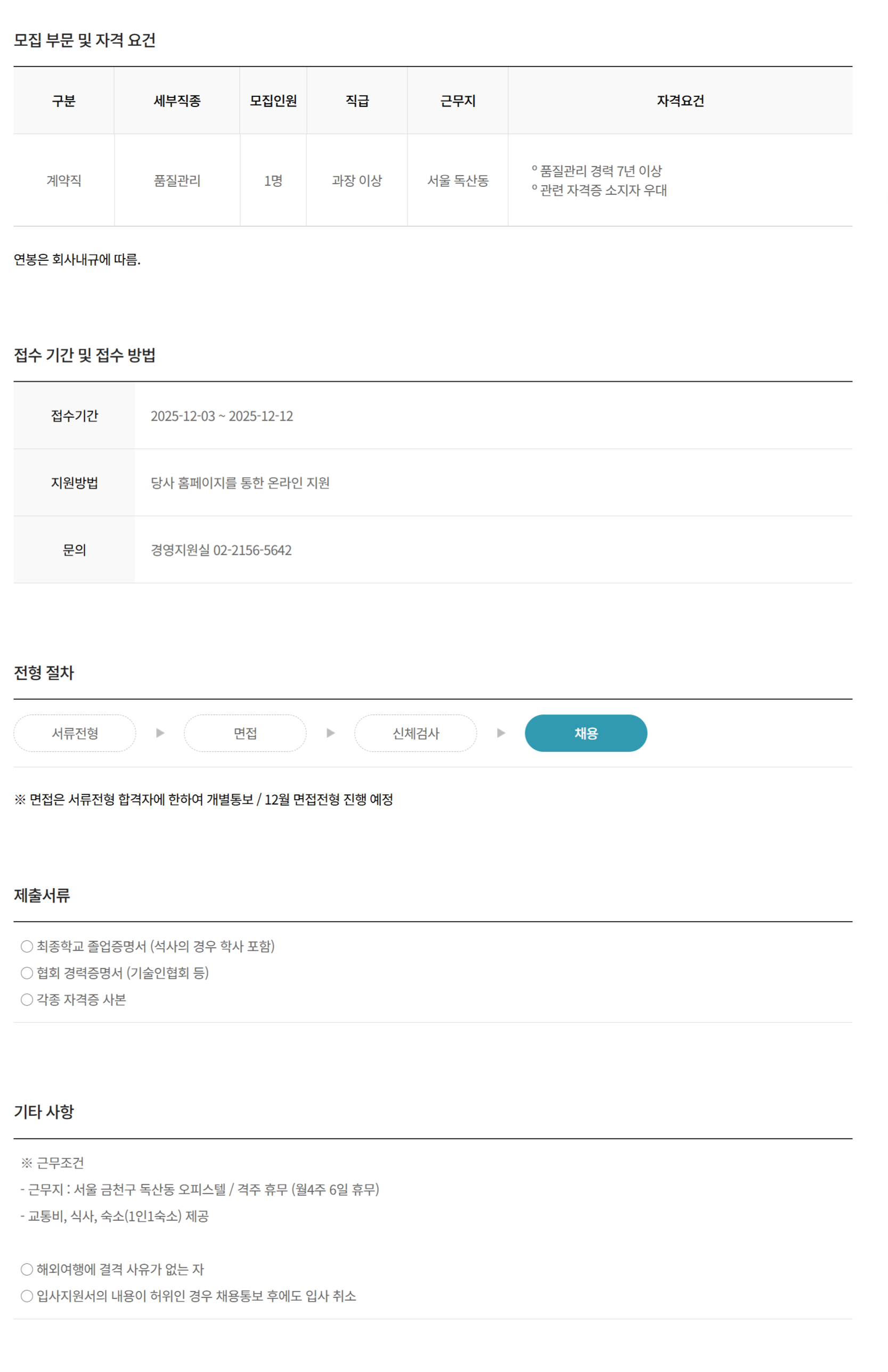 ±¸ºÐ ¼¼ºÎÁ÷Á¾ ¸ðÁýÀοø Á÷±Þ ±Ù¹«Áö ÀÚ°Ý¿ä°Ç °è¾àÁ÷ ǰÁú°ü¸® 1¸í °úÀå ÀÌ»ó ¼¿ï µ¶»êµ¿ ¨¬ ǰÁú°ü¸® °æ·Â 7³â ÀÌ»ó ¨¬ °ü·Ã ÀÚ°ÝÁõ ¼ÒÁöÀÚ ¿ì´ë