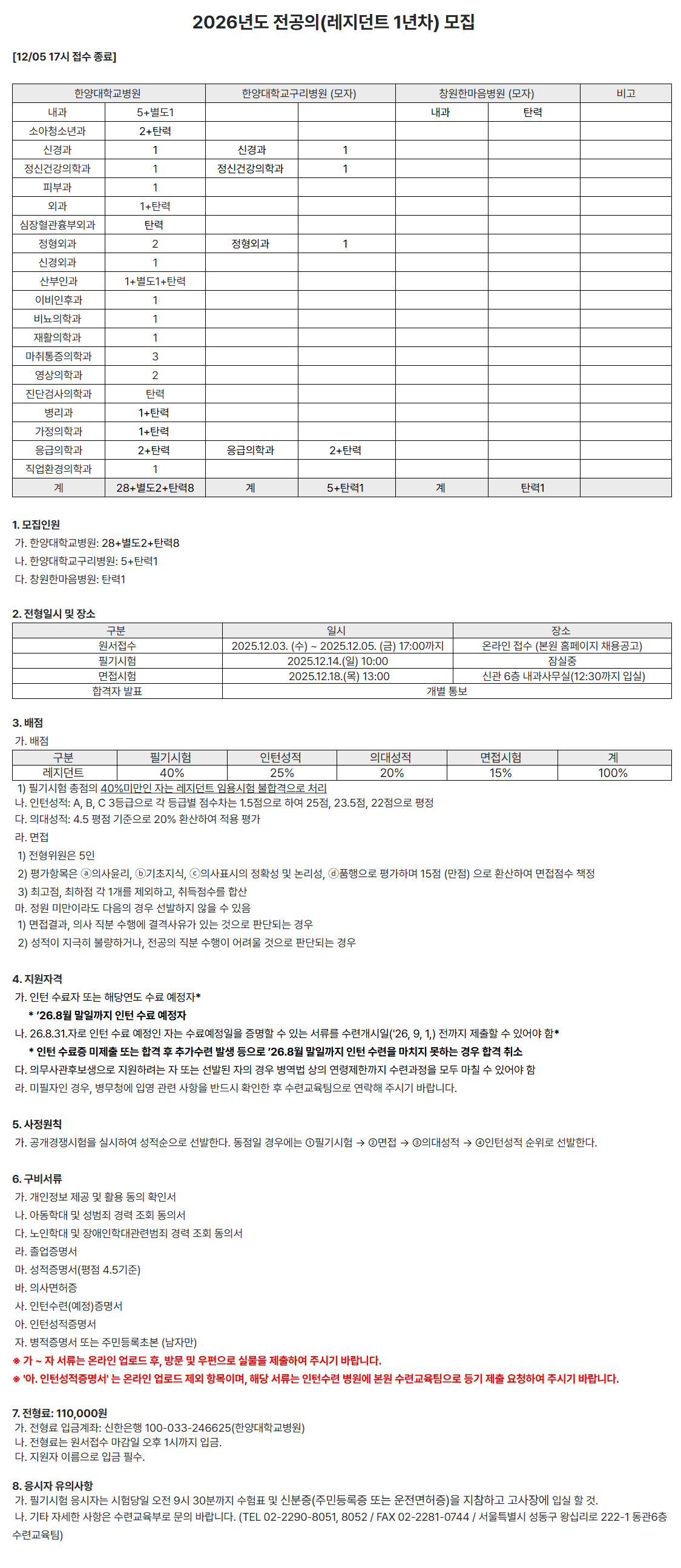 °¡. ÇѾç´ëÇб³º´¿ø: 28+º°µµ2+ź·Â8