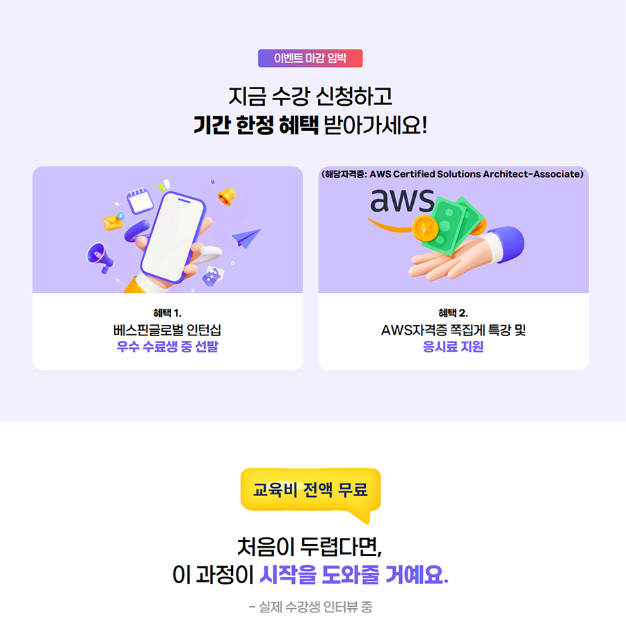 Ãë¾÷À» À§ÇÑ ÀÚ°ÝÁõ ÃëµæÁö¿ø :AWSÀÚ°ÝÁõ Ãëµæ. ½ÃÀÀ½Ãºñ($150)Áö¿ø