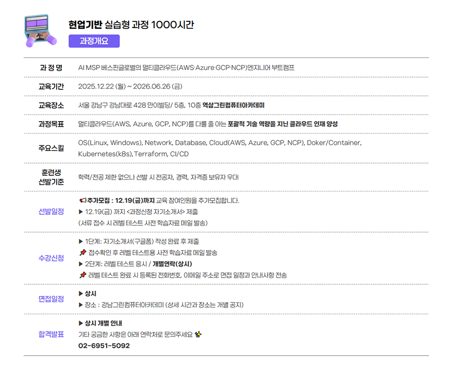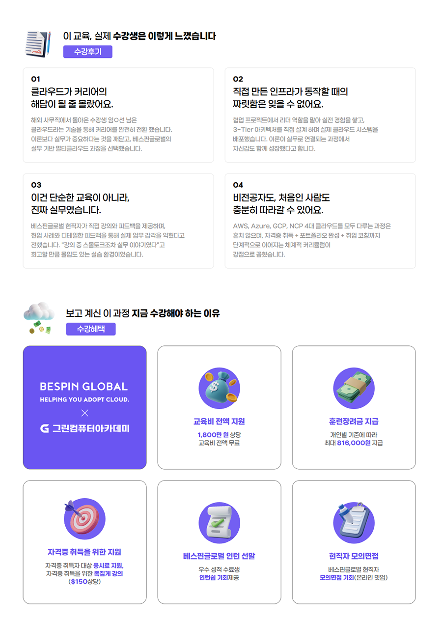 º£½ºÇɱ۷ιú ÇöÁ÷ÀÚ°¡ Á÷Á¢ °ÀÇ¿Í Çǵå¹éÀ» Á¦°øÇϸç, AWS, Azure, GCP, NCP 4´ë Ŭ¶ó¿ìµå¸¦ ¸ðµÎ ´Ù·ç´Â °úÁ¤Àº