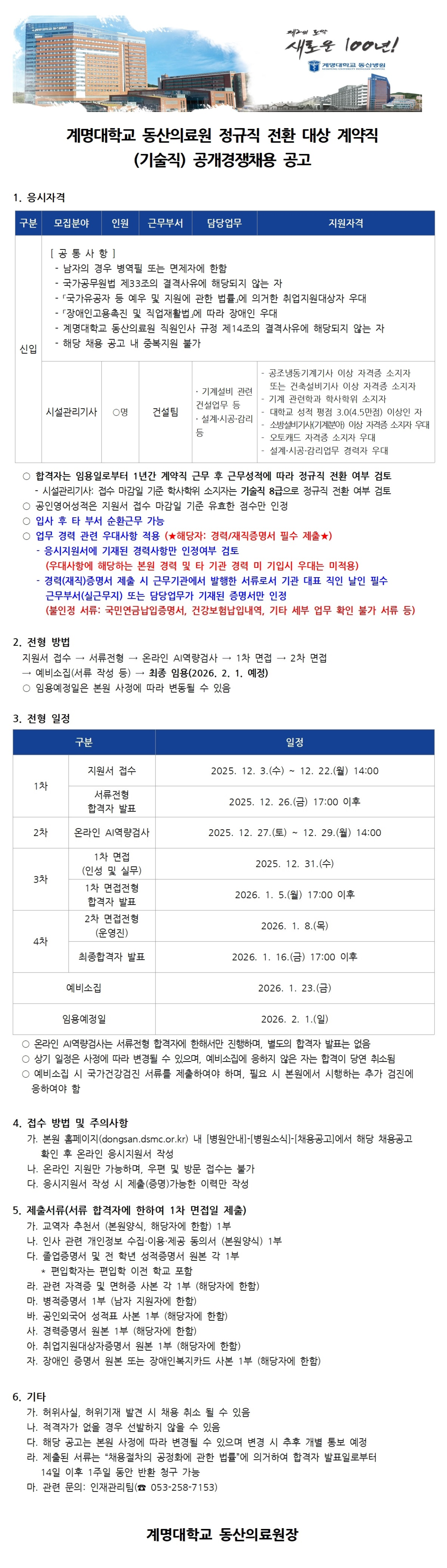 °è¸í´ëÇб³ µ¿»êÀÇ·á¿ø Á¤±ÔÁ÷ Àüȯ °è¾àÁ÷(½Ã¼³°ü¸®±â»ç) °ø°³°æÀïä¿ë