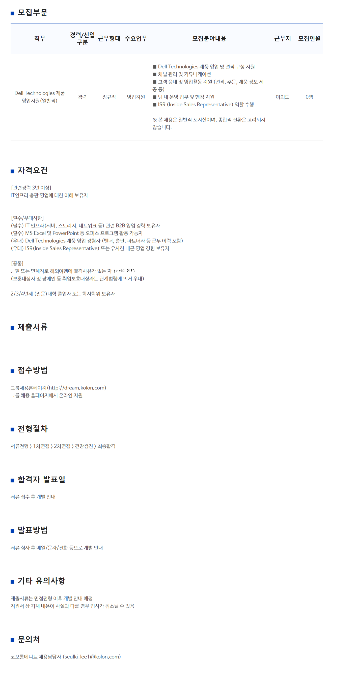 Dell Technologies Á¦Ç° ¿µ¾÷Áö¿ø(ÀϹÝÁ÷) °æ·Â Á¤±ÔÁ÷ ¿µ¾÷Áö¿ø ◼ Dell Technologies Á¦Ç° ¿µ¾÷ ¹× °ßÀû ±¸¼º Áö¿ø