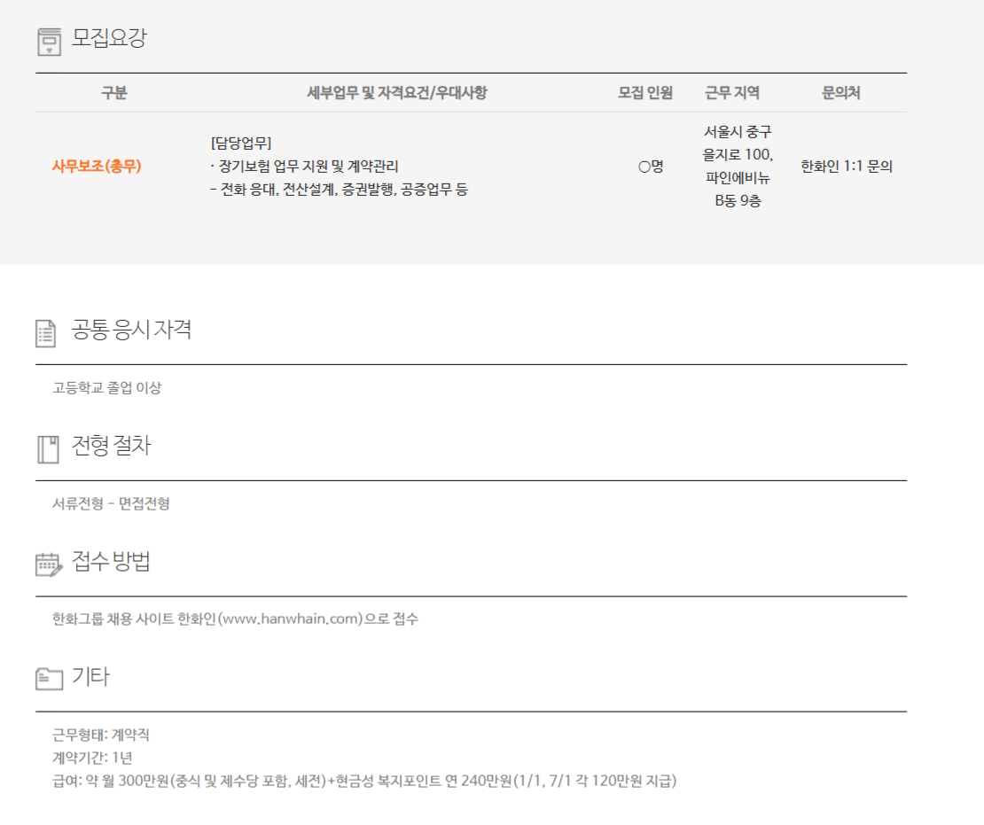 ÇÑȼÕÇØº¸Çè(ÁÖ) °è¾àÁ÷ ä¿ë - ±â¾÷º¸ÇèºÎ¹® »ç¹«º¸Á¶ ä¿ë