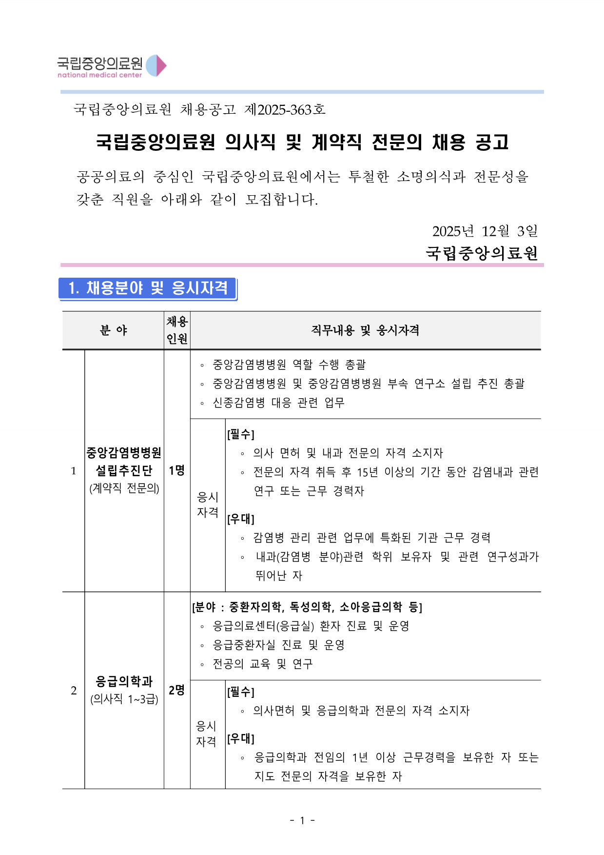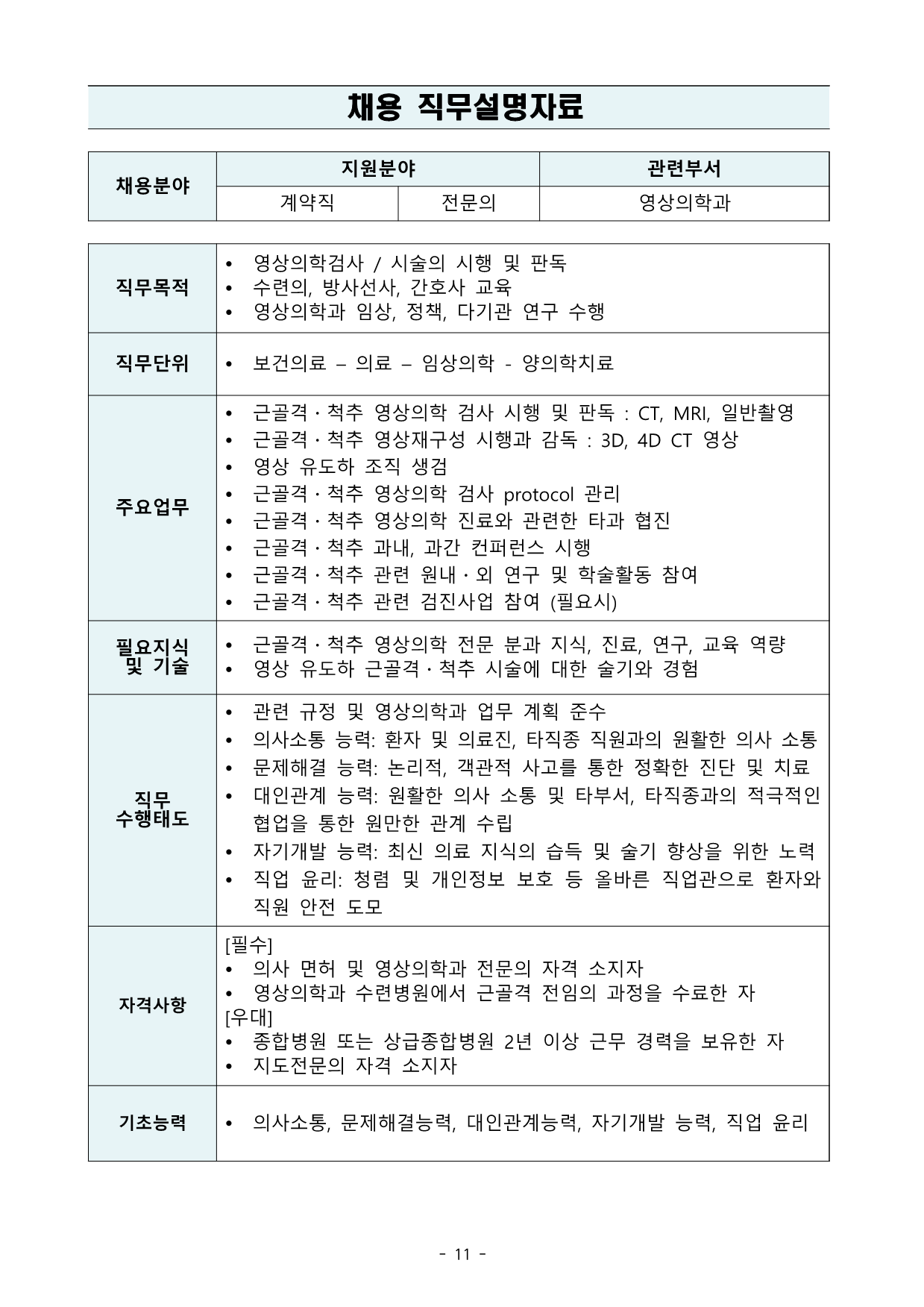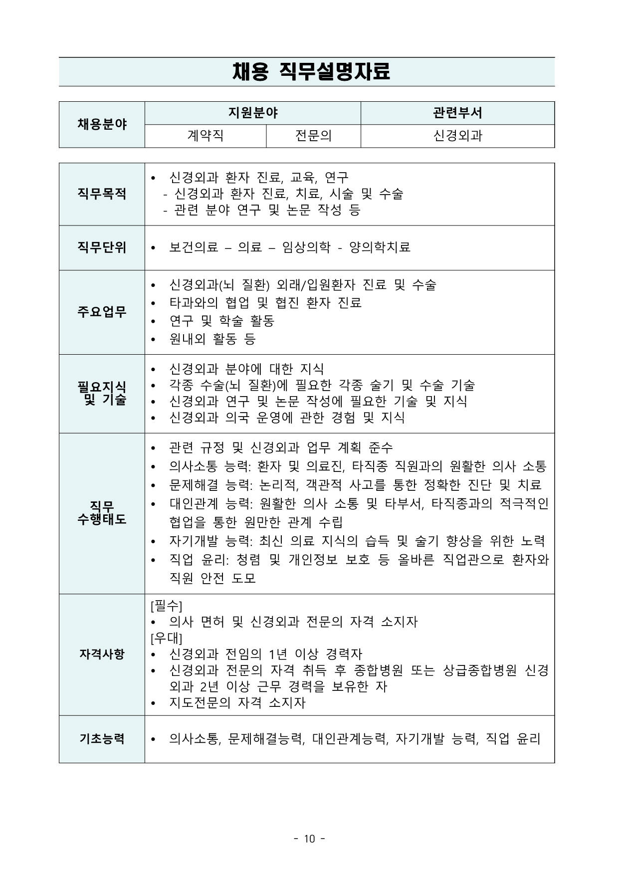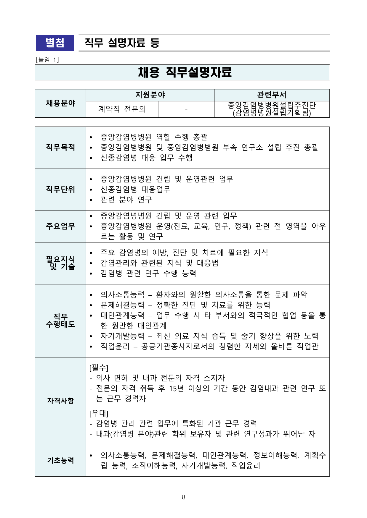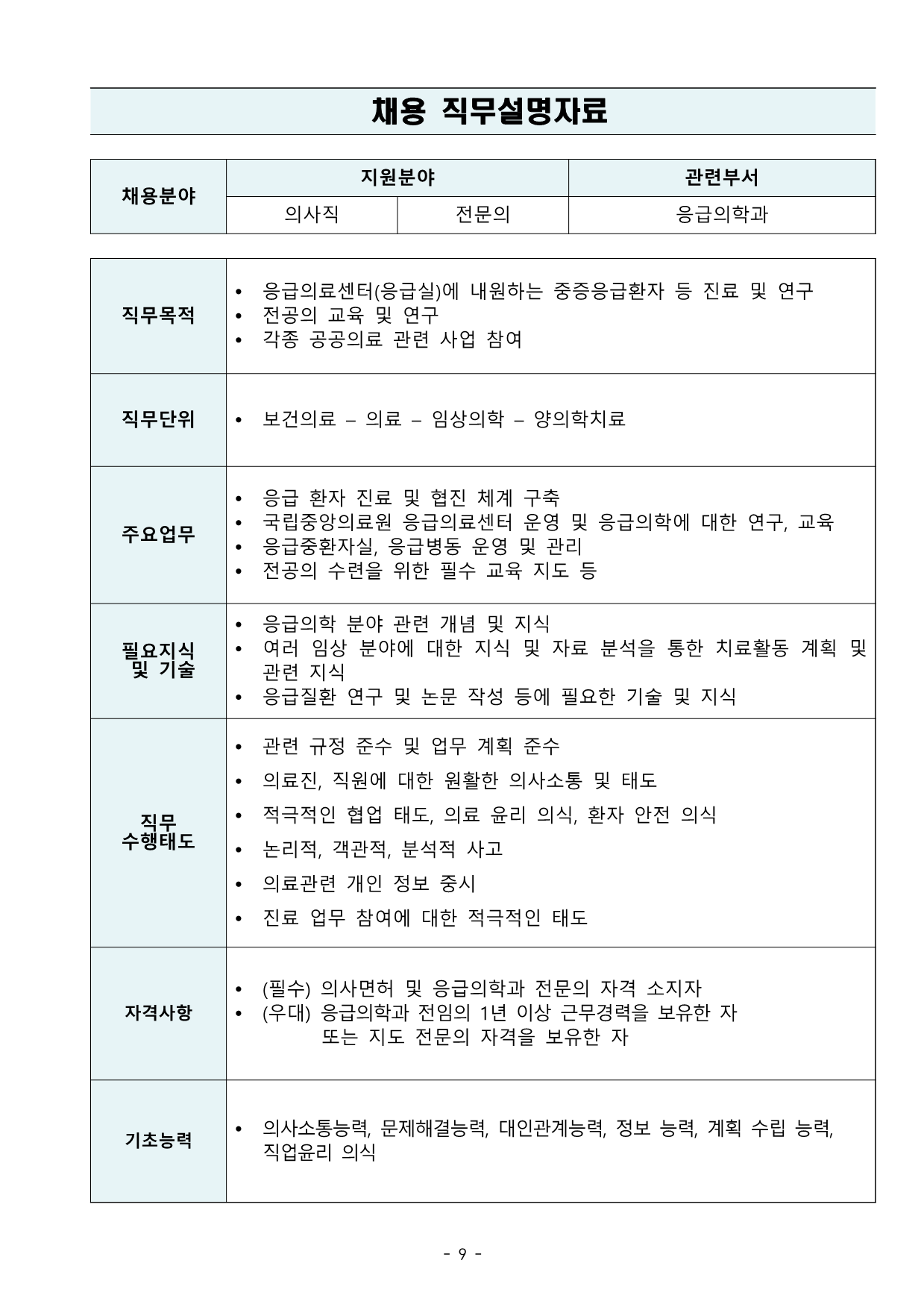 ÀÇ»çÁ÷ ¹× °è¾àÁ÷ Àü¹®ÀÇ Ã¤¿ë °ø°í(Áß¾Ó°¨¿°º´º´¿ø¼³¸³ÃßÁø´Ü, ÀÀ±ÞÀÇÇаú, ½Å°æ¿Ü°ú, ¿µ»óÀÇÇаú)