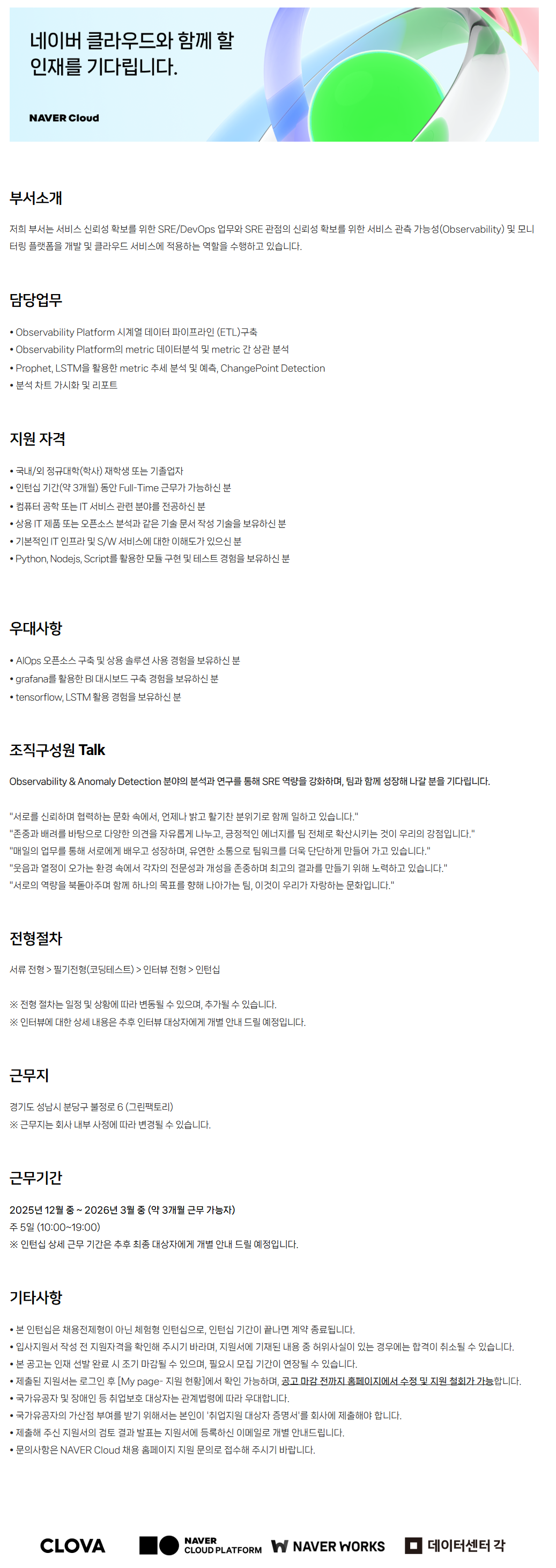 Observability & Anomaly Detection ºÐ¾ßÀÇ ºÐ¼®°ú ¿¬±¸¸¦ ÅëÇØ SRE ¿ª·®À» °ÈÇϸç, ÆÀ°ú ÇÔ²² ¼ºÀåÇØ ³ª°¥ ºÐÀ» ±â´Ù¸³´Ï´Ù.