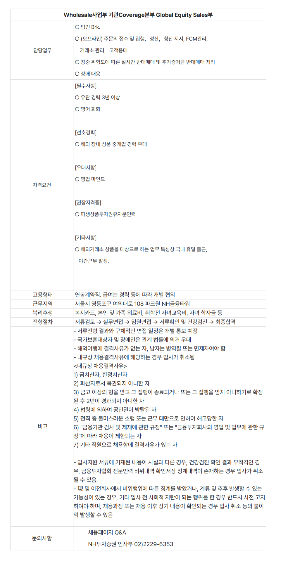 [°æ·ÂÁ÷ä¿ë]Wholesale»ç¾÷ºÎ ±â°üCoverageº»ºÎ Global Equity SalesºÎ