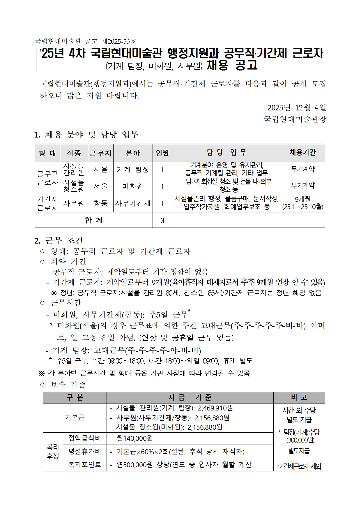 ±¹¸³Çö´ë¹Ì¼ú°ü ÇàÁ¤Áö¿ø°ú °ø¹«Á÷¡¤±â°£Á¦ ±Ù·ÎÀÚ Ã¤¿ë °ø°í