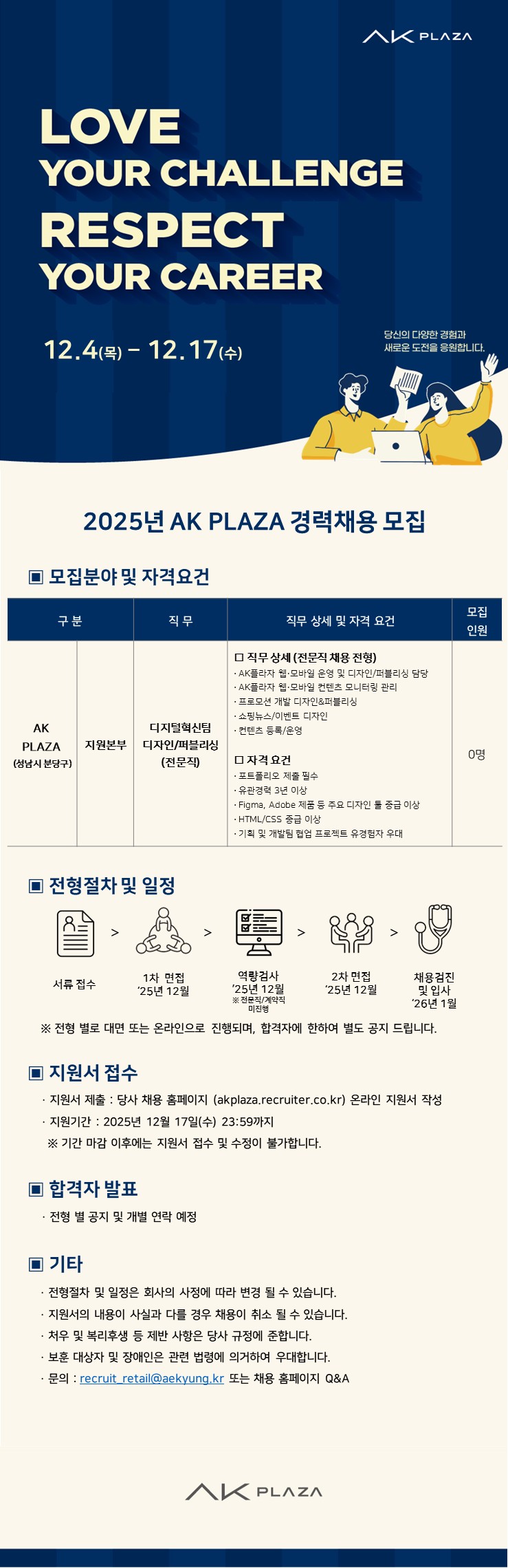 [°æ·Âä¿ë] AK PLAZA Áö¿øº»ºÎ µðÁöÅÐÇõ½ÅÆÀ µðÀÚÀÎ/ÆÛºí¸®½Ì Àü¹®Á÷ °æ·Âä¿ë