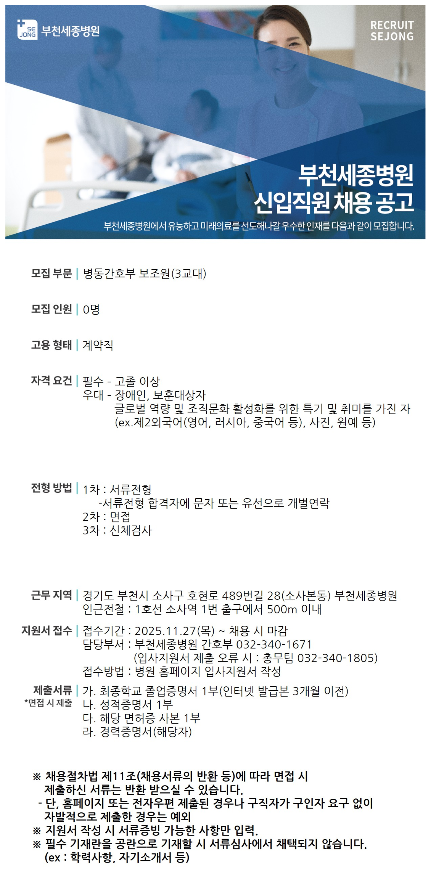 [ºÎõ¼¼Á¾º´¿ø] º´µ¿°£È£ºÎ º¸Á¶¿ø(3±³´ë)ä¿ë°ø°í(°è¾àÁ÷)