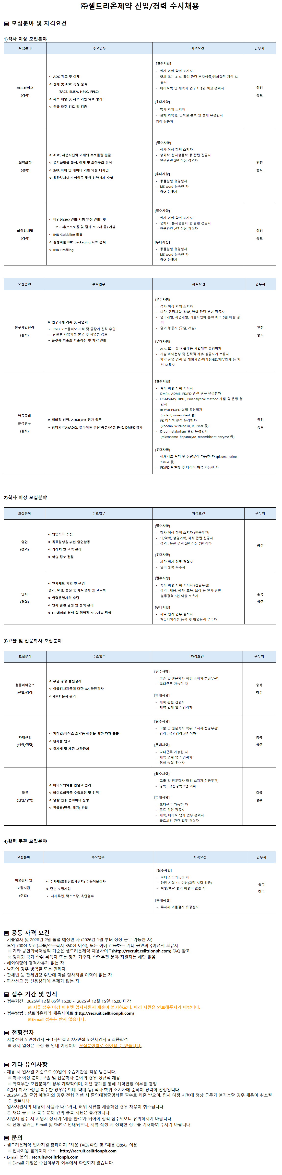 - Á¢¼ö¹æ¹ý : ¼¿Æ®¸®¿ÂÁ¦¾à ä¿ë»çÀÌÆ® (http://recruit.celltrionph.com)