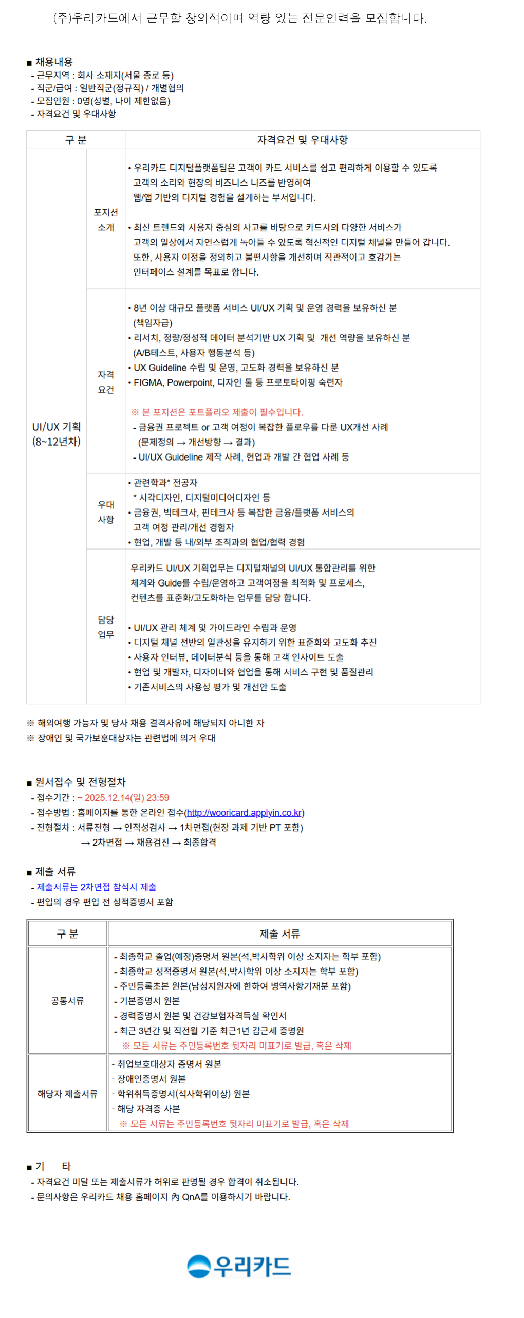 ¿ì¸®Ä«µå °æ·ÂÁ÷ ä¿ë °ø°í(UI/UX ±âȹ(8~12³âÂ÷))