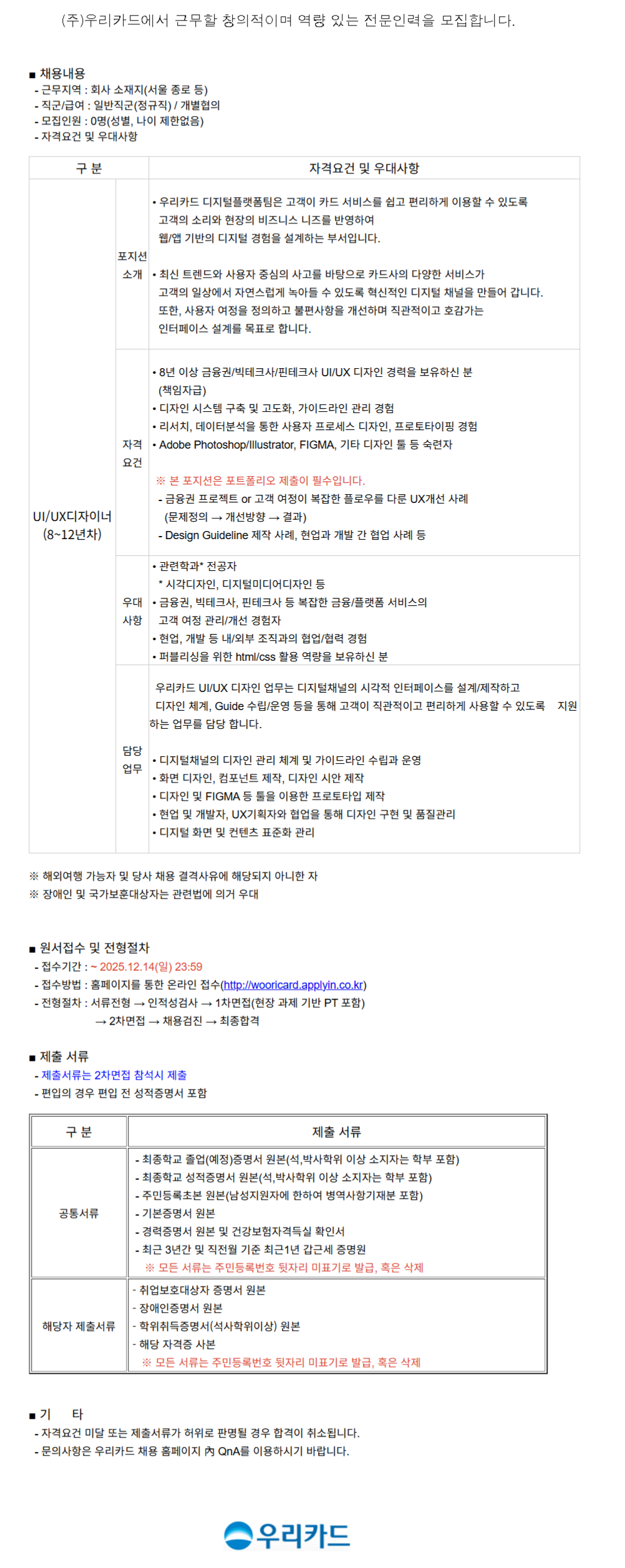 ¿ì¸®Ä«µå °æ·ÂÁ÷ ä¿ë °ø°í(UI/UX µðÀÚÀ̳Ê(8~12³âÂ÷)