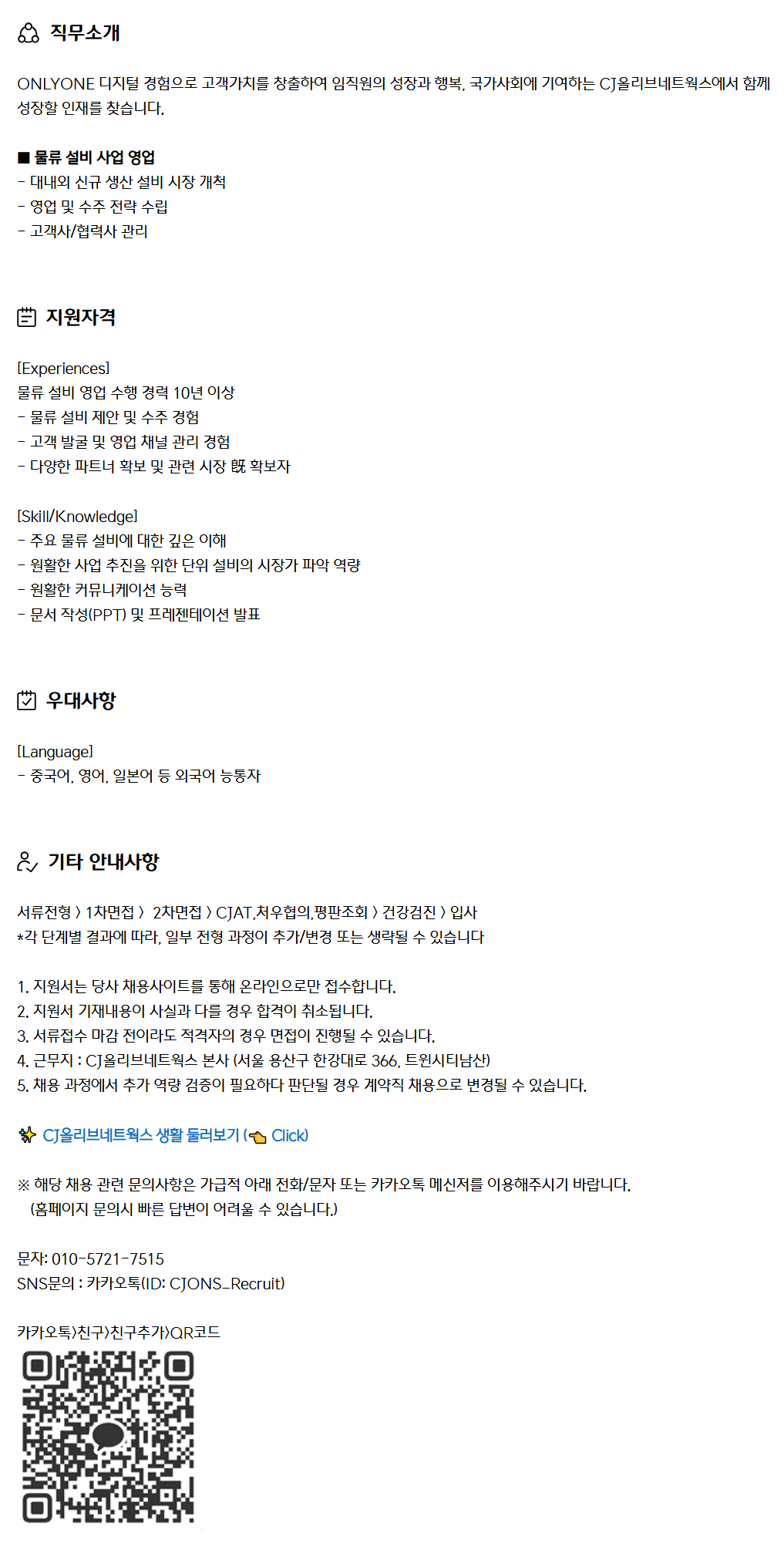 Á÷¹«¼Ò°³ ONLYONE µðÁöÅÐ °æÇèÀ¸·Î °í°´°¡Ä¡¸¦ âÃâÇÏ¿© ÀÓÁ÷¿øÀÇ ¼ºÀå°ú Çູ, ±¹°¡»çȸ¿¡ ±â¿©ÇÏ´Â CJ¿Ã¸®ºê³×Æ®¿÷½º¿¡¼ ÇÔ²² ¼ºÀåÇÒ ÀÎÀ縦 ã½À´Ï´Ù. ¡á ¹°·ù ¼³ºñ »ç¾÷ ¿µ¾÷ - ´ë³»¿Ü ½Å±Ô »ý»ê ¼³ºñ ½ÃÀå °³Ã´ - ¿µ¾÷ ¹× ¼öÁÖ Àü·« ¼ö¸³ - °í°´»ç/Çù·Â»ç °ü¸®