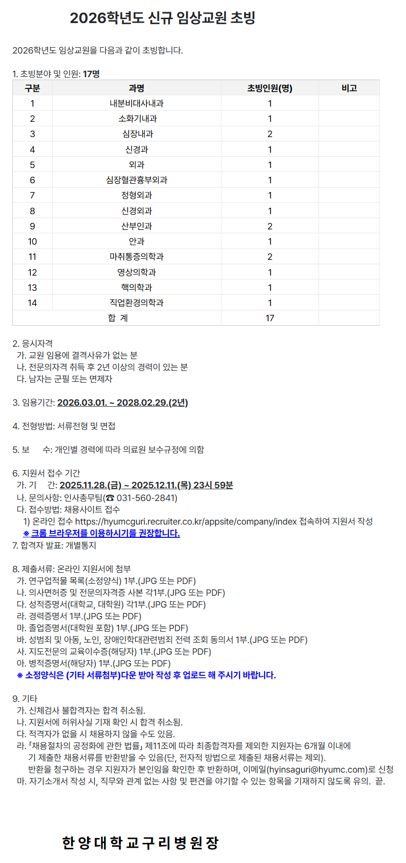 1) ¿Â¶óÀÎ Á¢¼ö https://hyumcguri.recruiter.co.kr/appsite/company/index Á¢¼ÓÇÏ¿© Áö¿ø¼ ÀÛ¼º