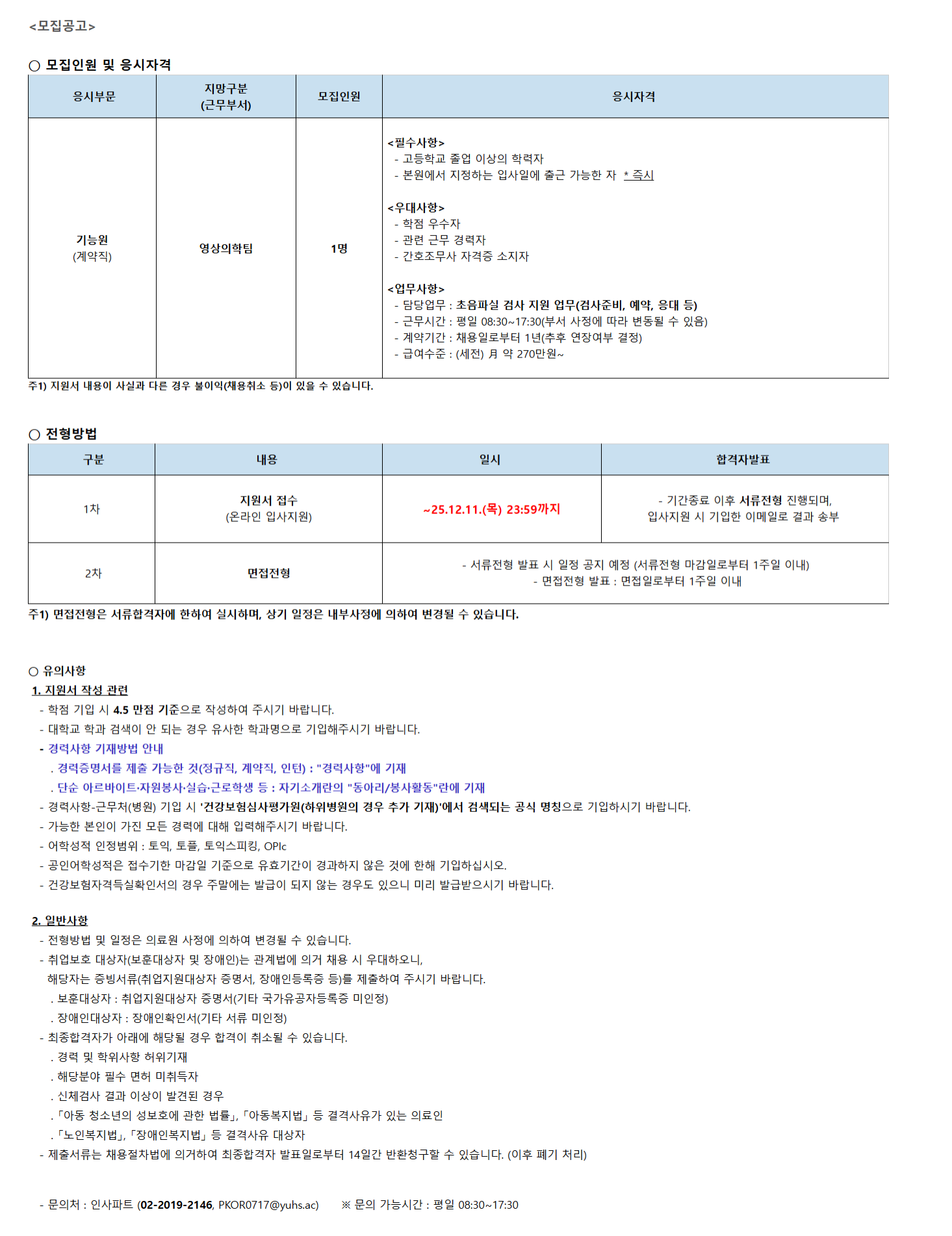 [ÀϹÝ-°³²] ±â´É¿ø(°è¾àÁ÷) ¿µ»óÀÇÇÐÆÀ 25.12 ¸ðÁý