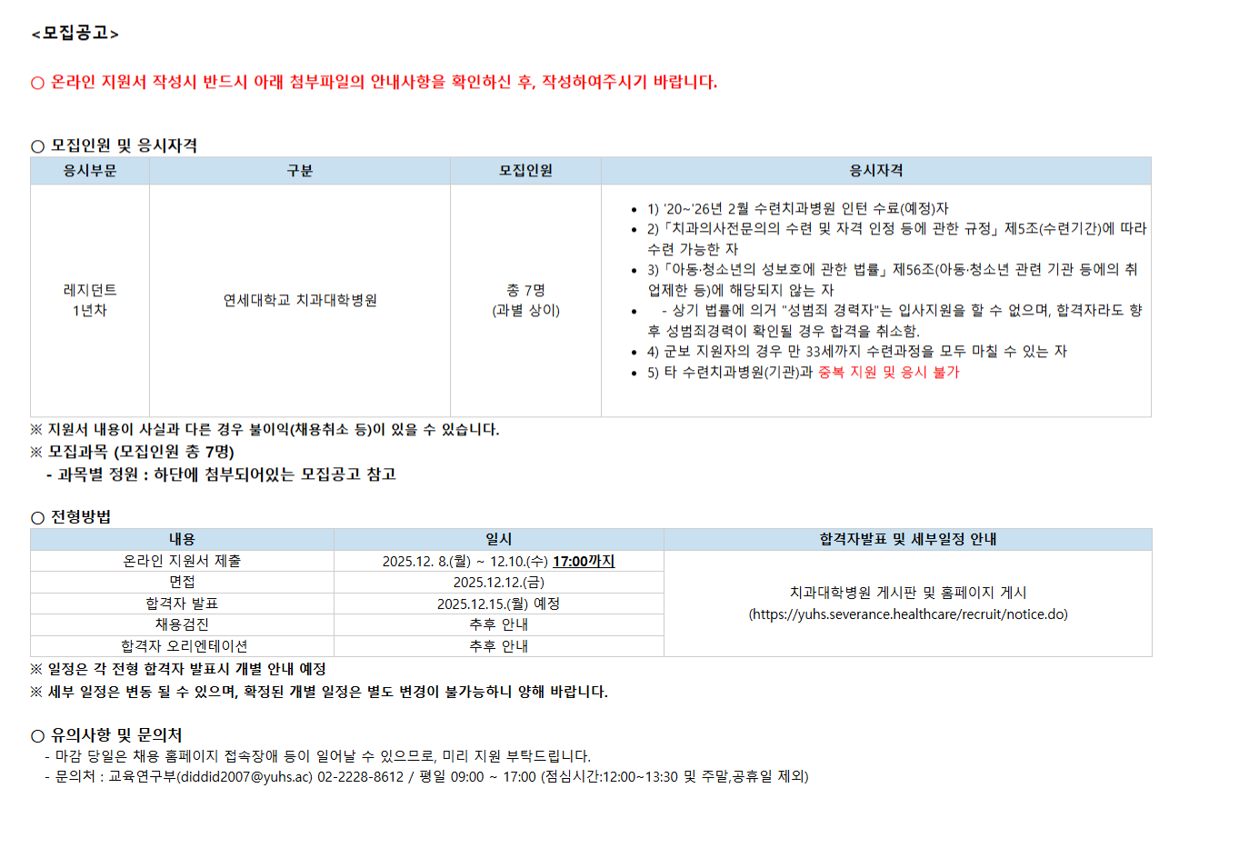 2026³âµµ Ä¡°úÀÇ»çÀü°øÀÇ(·¹Áö´øÆ®) ¼±¹ß Ãß°¡ ¸ðÁý °ø°í