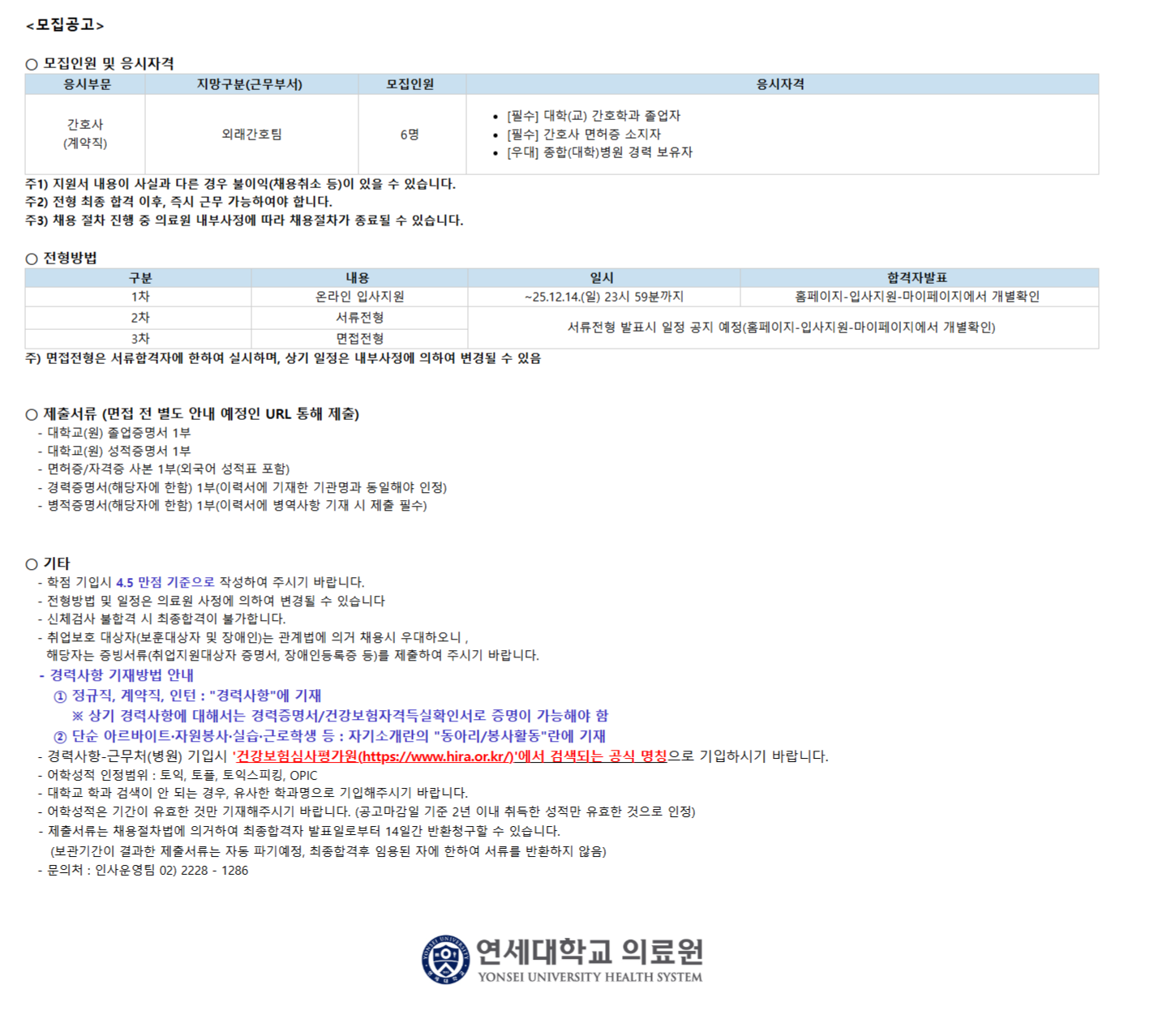 [ÀϹÝ-½ÅÃÌ] ¿¬¼¼ÀÇ·á¿ø ¿Ü·¡°£È£»ç(°è¾àÁ÷) 25.12 ¸ðÁý