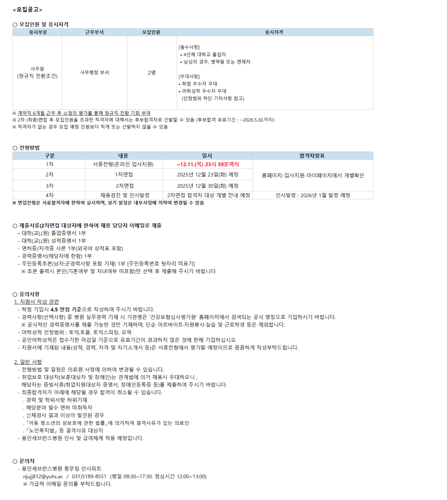 [¿ëÀÎ] ÀϹÝÇàÁ¤ »ç¹«¿ø(Á¤±ÔÁ÷ ÀüȯÁ¶°Ç) ½Å±Ôä¿ë_25.12