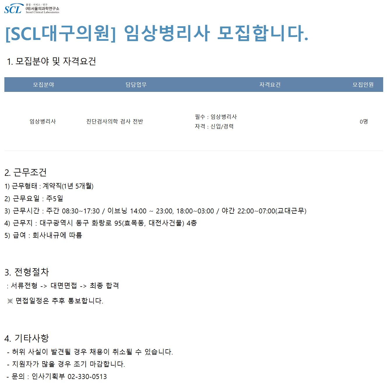 [SCL´ë±¸ÀÇ¿ø] ÀÓ»óº´¸®»ç ¸ðÁýÇÕ´Ï´Ù.
