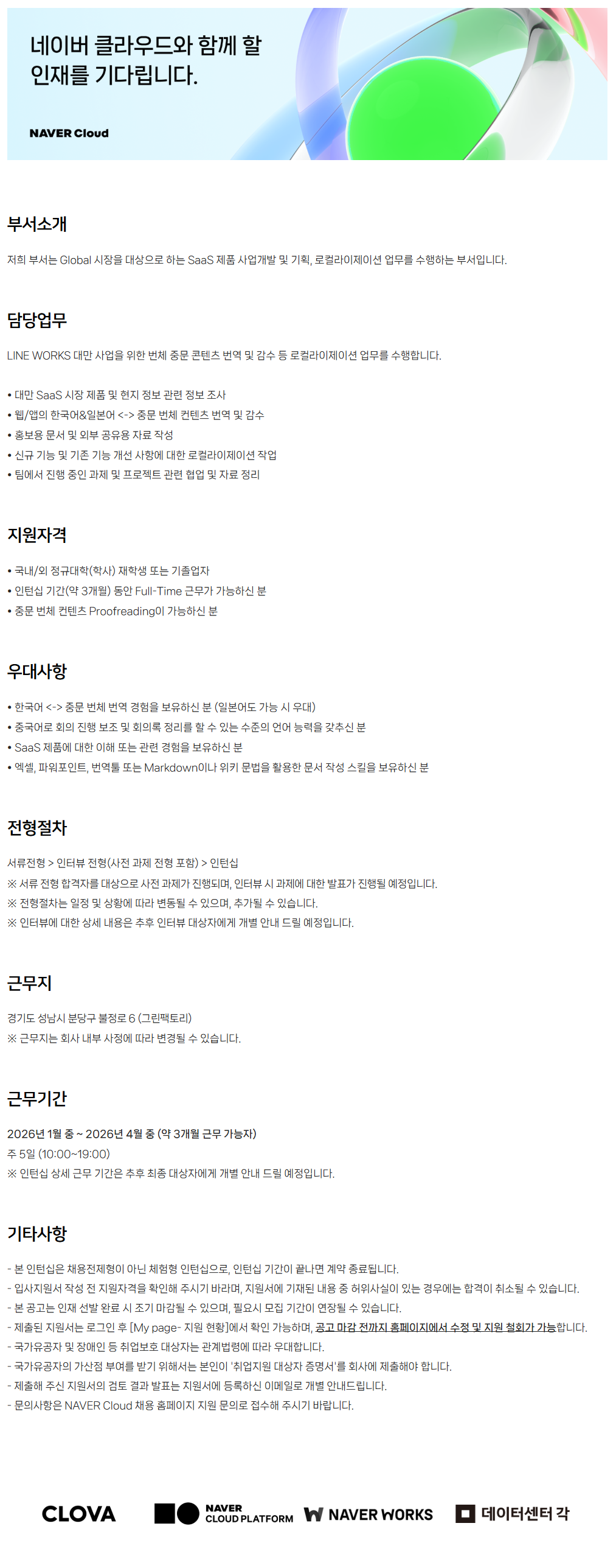 LINE WORKS ´ë¸¸ »ç¾÷À» À§ÇÑ ¹øÃ¼ Áß¹® ÄÜÅÙÃ÷ ¹ø¿ª ¹× °¨¼ö µî ·ÎÄöóÀÌÁ¦ÀÌ¼Ç ¾÷¹«¸¦ ¼öÇàÇÕ´Ï´Ù.
