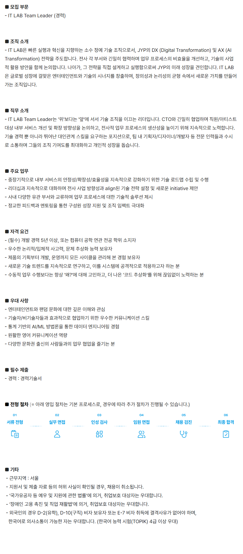 - IT LAB Team Leader (°æ·Â)