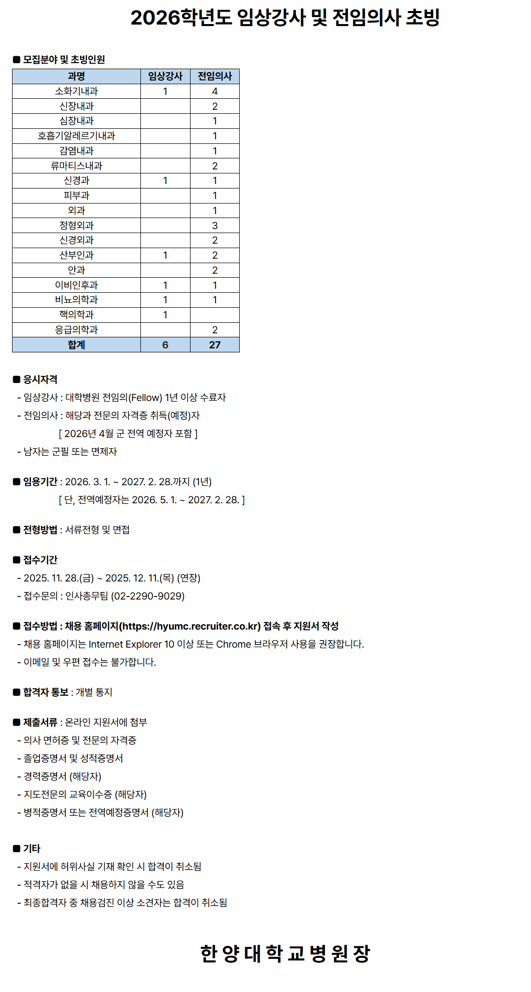 - ÀÓ»ó°»ç : ´ëÇк´¿ø ÀüÀÓÀÇ(Fellow) 1³â ÀÌ»ó ¼ö·áÀÚ