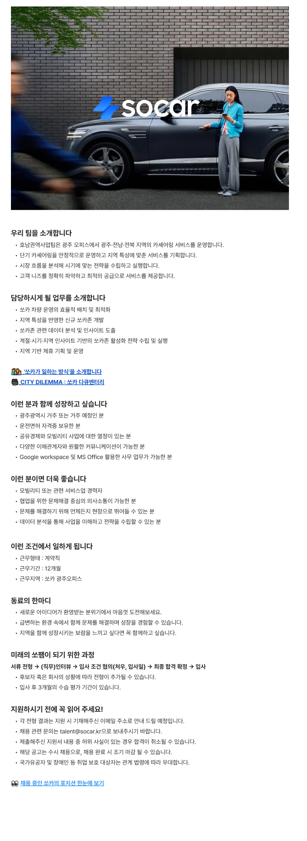 ä¿ë °ü·Ã ¹®ÀÇ´Â talent@socar.kr******@*******.***À¸·Î º¸³»Áֽñ⠹ٶø´Ï´Ù.