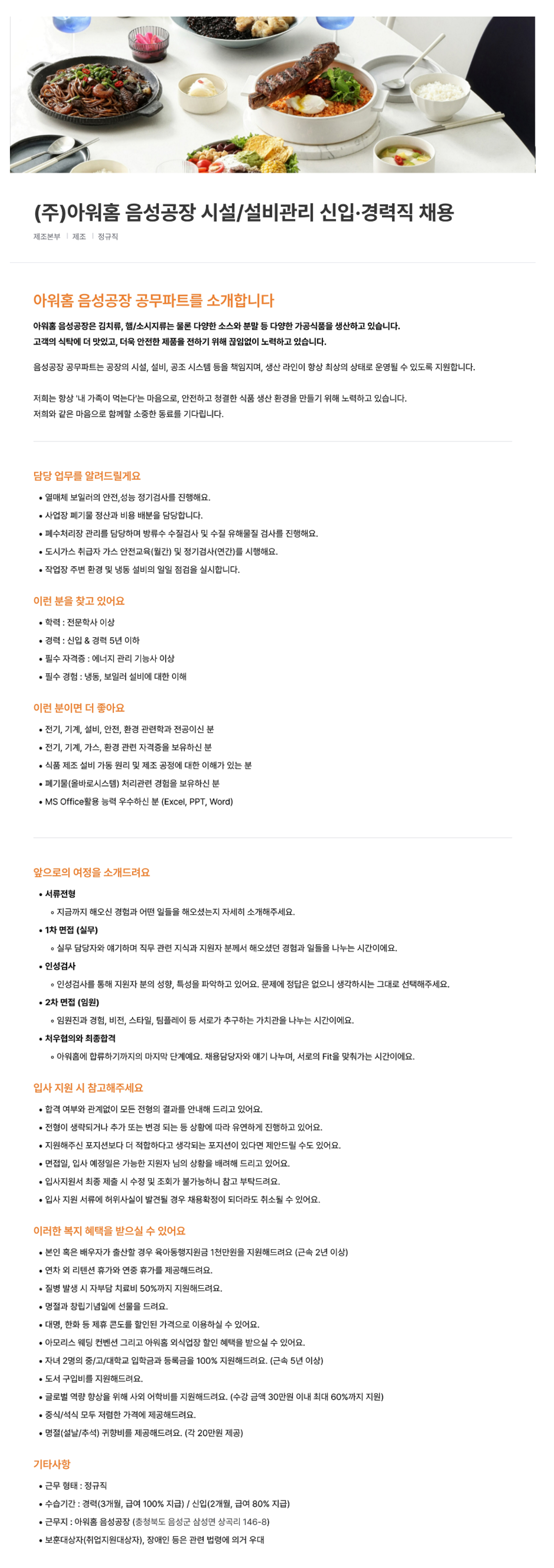 [Á¦Á¶º»ºÎ] À½¼º°øÀå ½Ã¼³/¼³ºñ°ü¸® ½ÅÀÔ¡¤°æ·ÂÁ÷ ä¿ë