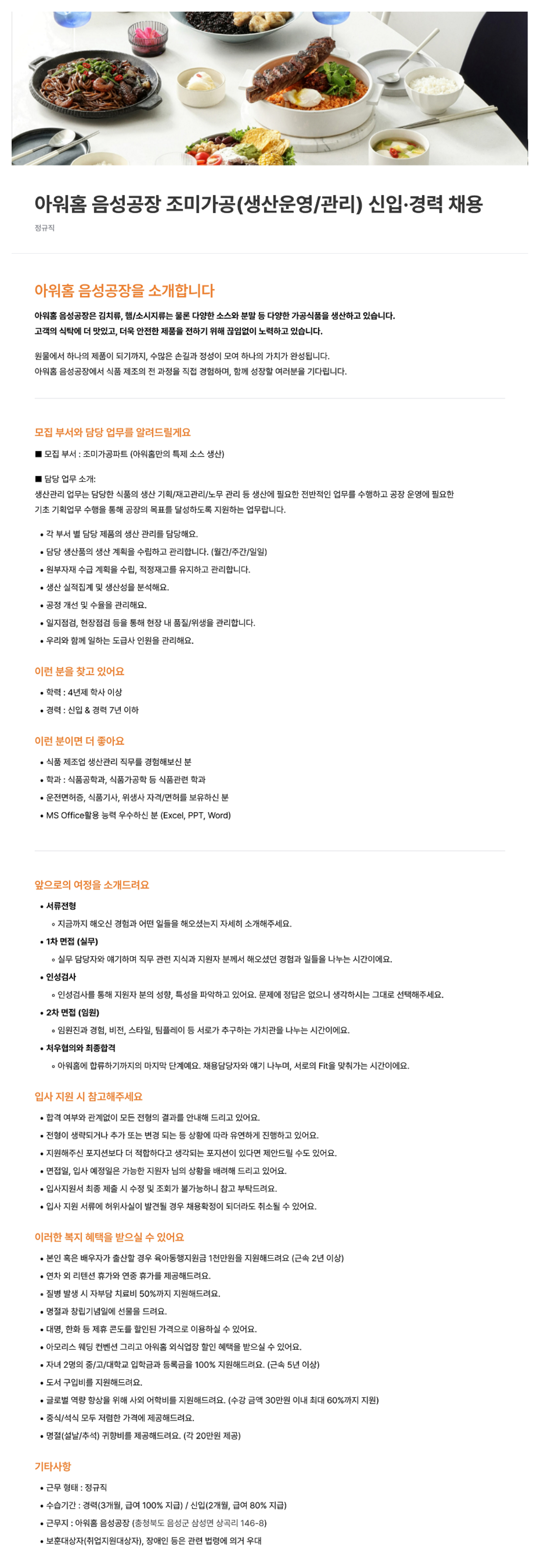 [Á¦Á¶º»ºÎ] À½¼º°øÀå Á¶¹Ì°¡°ø(»ý»ê¿î¿µ/°ü¸®) ½ÅÀÔ¡¤°æ·ÂÁ÷ ä¿ë