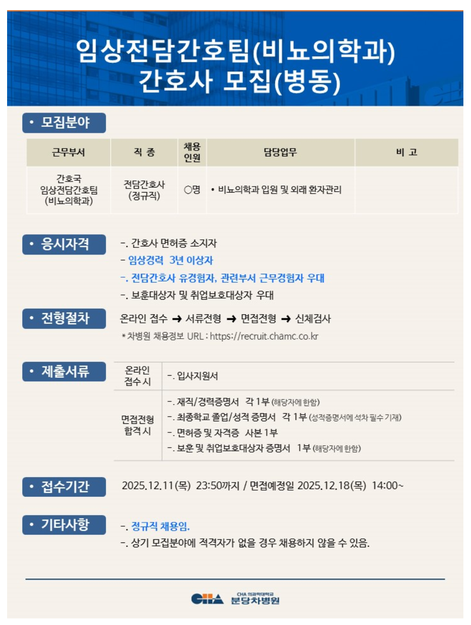 [ºÐ´çÂ÷º´¿ø] ÀÓ»óÀü´ã°£È£ÆÀ(ºñ´¢ÀÇÇаú) °£È£»ç ¸ðÁý(º´µ¿)