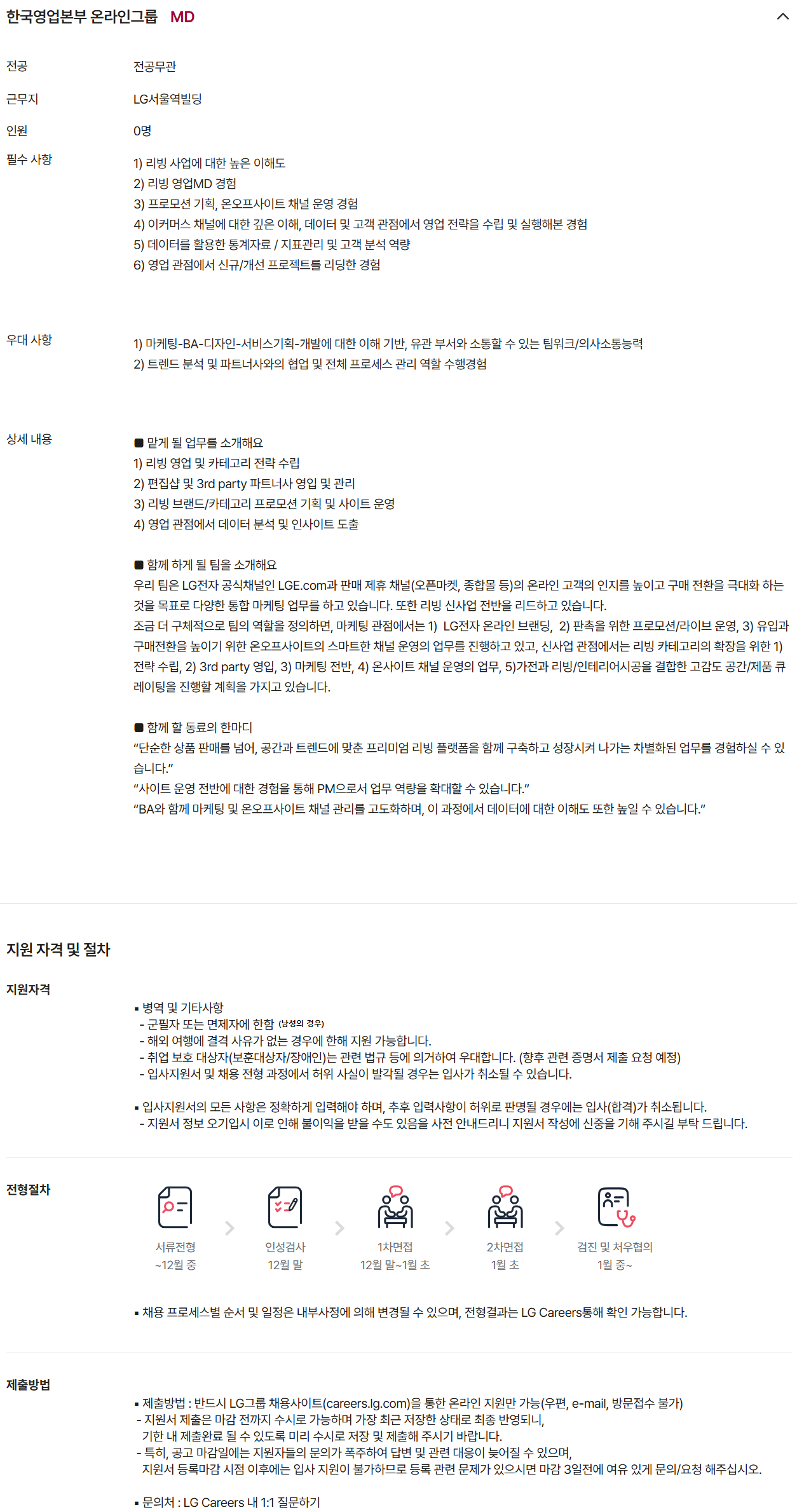 ¿ì¸® ÆÀÀº LGÀüÀÚ °ø½Ää³ÎÀÎ LGE.com°ú ÆÇ¸Å Á¦ÈÞ Ã¤³Î(¿ÀǸ¶ÄÏ, Á¾ÇÕ¸ô µî)ÀÇ ¿Â¶óÀÎ °í°´ÀÇ ÀÎÁö¸¦ ³ôÀÌ°í ±¸¸Å ÀüȯÀ» ±Ø´ëÈ ÇÏ´Â °ÍÀ» ¸ñÇ¥·Î ´Ù¾çÇÑ ÅëÇÕ ¸¶ÄÉÆÃ ¾÷¹«¸¦ Çϰí ÀÖ½À´Ï´Ù. ¶ÇÇÑ ¸®ºù ½Å»ç¾÷ Àü¹ÝÀ» ¸®µåÇϰí ÀÖ½À´Ï´Ù.