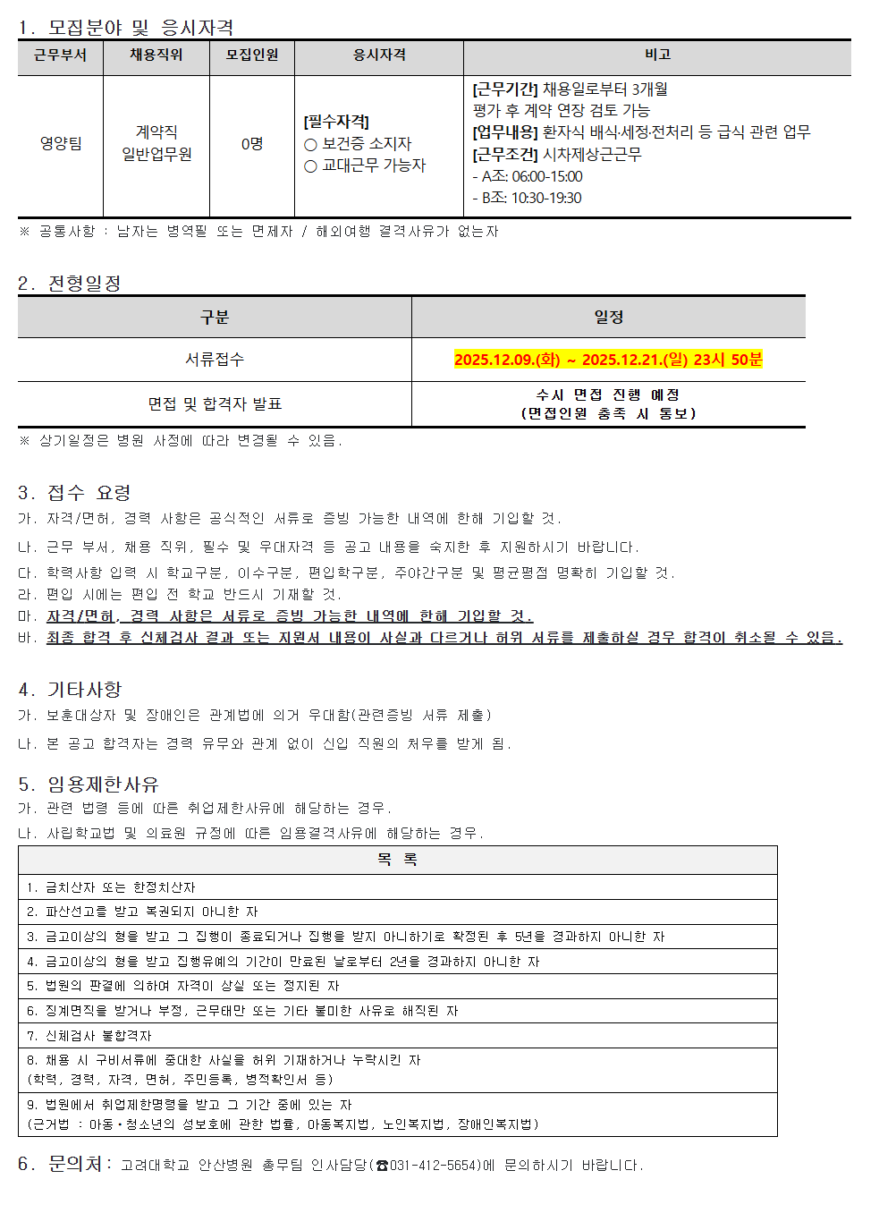 [¾È»êº´¿ø25-188] ¿µ¾çÆÀ °è¾àÁ÷ÀϹݾ÷¹«¿ø ¸ðÁý