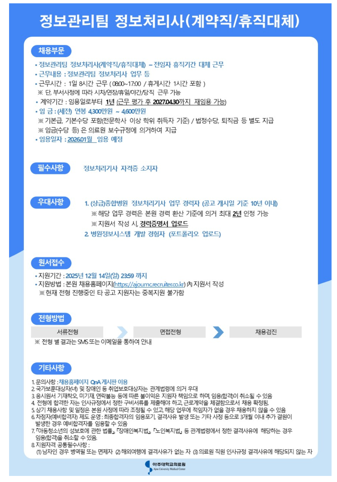 Á¤º¸°ü¸®ÆÀ Á¤º¸Ã³¸®»ç(°è¾àÁ÷/ÈÞÁ÷´ëü)