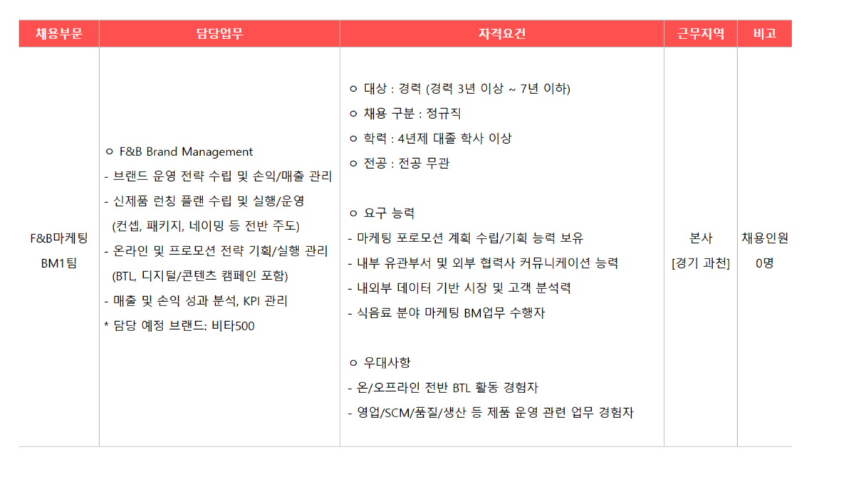 [±¤µ¿Á¦¾à] F&B¸¶ÄÉÆÃºÎ¹® BM1ÆÀ ¸¶ÄÉÆÃBM °æ·ÂÁ÷¿ø ¸ðÁý