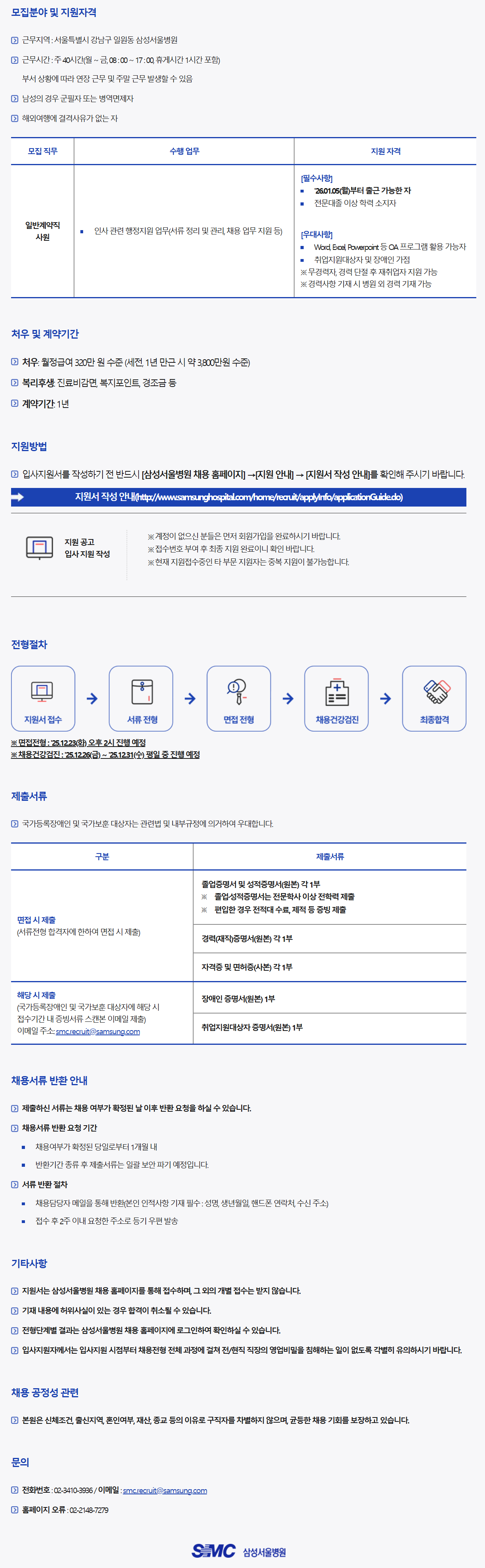 ¸ðÁý Á÷¹« ¼öÇà ¾÷¹« Áö¿ø ÀÚ°Ý ÀϹݰè¾àÁ÷ »ç¿ø ÀÎ»ç °ü·Ã ÇàÁ¤Áö¿ø ¾÷¹«(¼­·ù Á¤¸® ¹× °ü¸®, ä¿ë ¾÷¹« Áö¿ø µî) [Çʼö»çÇ×] '26.01.05(¿ù)ºÎÅÍ Ãâ±Ù °¡´ÉÇÑ ÀÚ Àü¹®´ëÁ¹ ÀÌ»ó Çз ¼ÒÁöÀÚ [¿ì´ë»çÇ×] Word, Excel, Powerpoint µî OA ÇÁ·Î±×·¥ Ȱ¿ë °¡´ÉÀÚ Ãë¾÷Áö¿ø´ë»óÀÚ ¹× Àå¾ÖÀÎ °¡Á¡ ¡Ø ¹«°æ·ÂÀÚ, °æ·Â ´ÜÀý ÈÄ ÀçÃë¾÷ÀÚ Áö¿ø °¡´É ¡Ø °æ·Â»çÇ× ±âÀç ½Ã º´¿ø ¿Ü °æ·Â ±âÀç °¡´É
