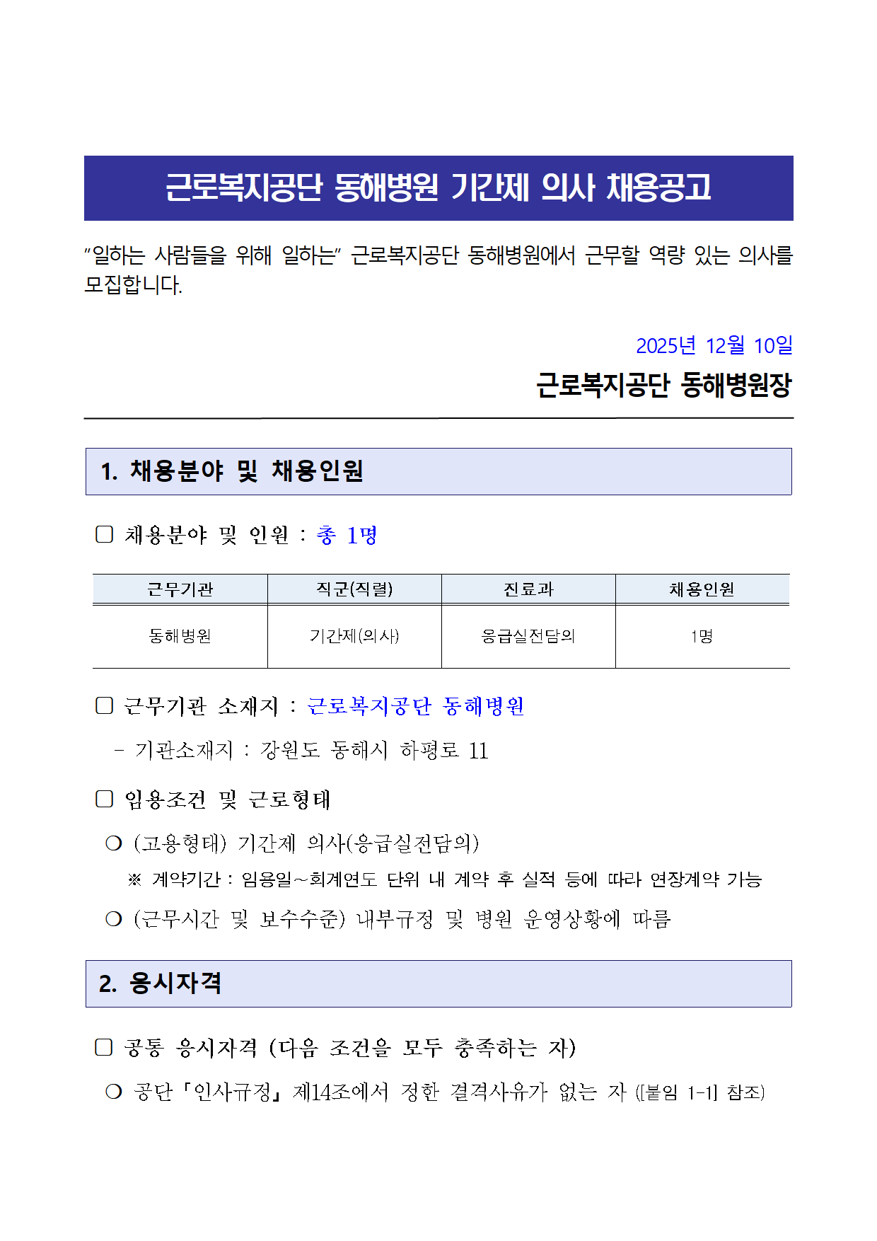 [µ¿Çغ´¿ø] ±â°£Á¦ ÀÇ»ç(ÀÀ±Þ½ÇÀü´ãÀÇ) ½Å±Ô ä¿ë