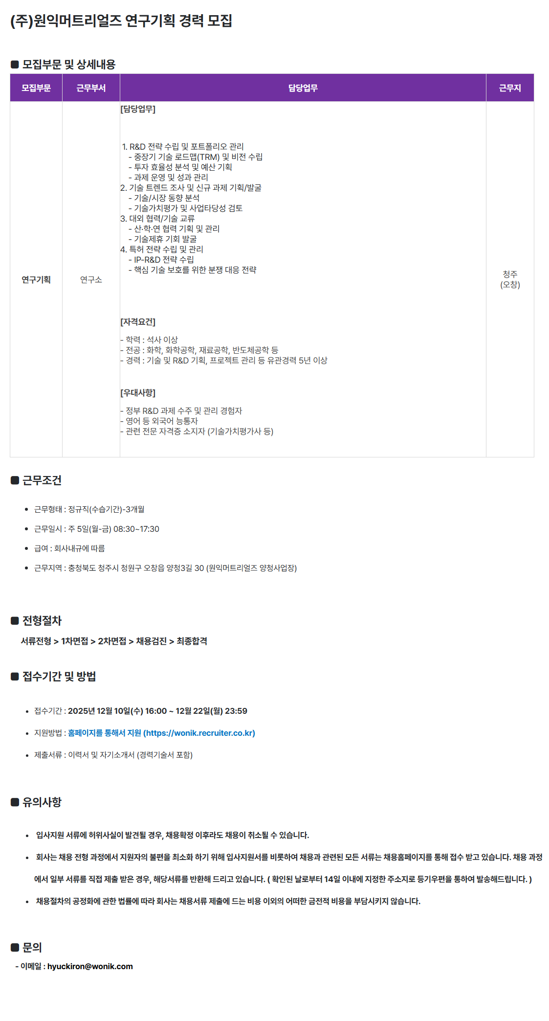 Áö¿ø¹æ¹ý : ȨÆäÀÌÁö¸¦ ÅëÇØ¼ Áö¿ø (https://wonik.recruiter.co.kr)