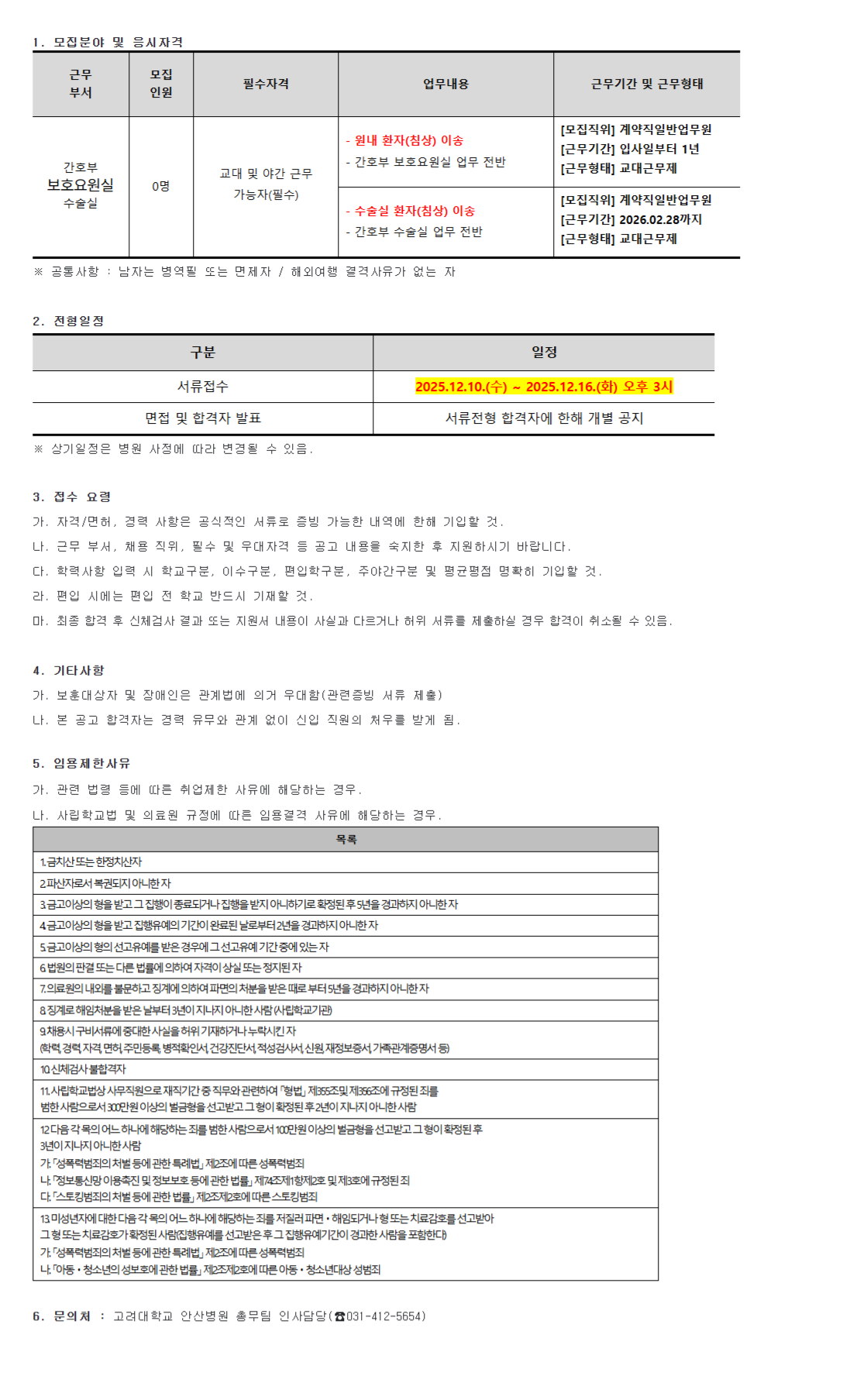 [¾È»êº´¿ø25-190] °£È£ºÎ(¼ö¼ú½Ç/º¸È£¿ä¿ø½Ç) °è¾àÁ÷ÀϹݾ÷¹«¿ø ¸ðÁý